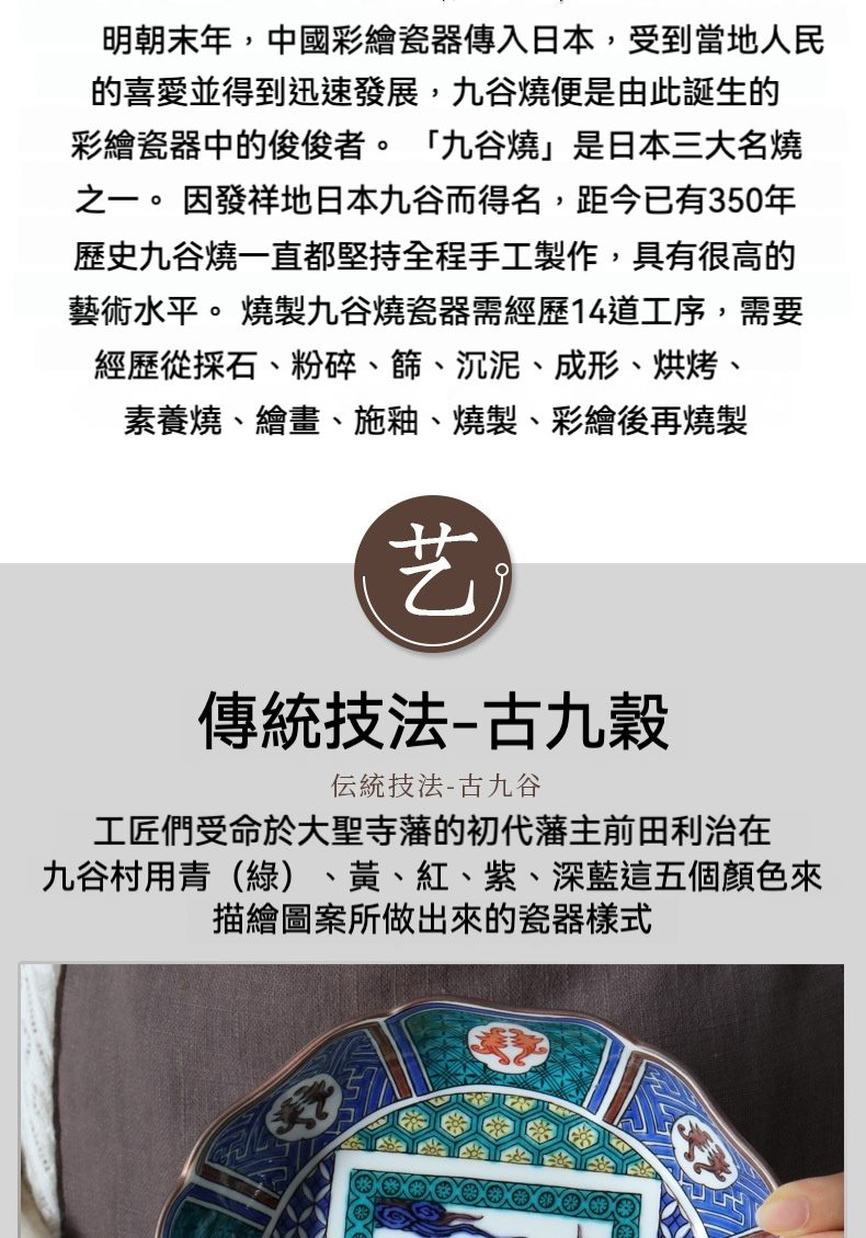 - 古九谷 = 九谷燒的起源,是最具收藏價值的時期作品。