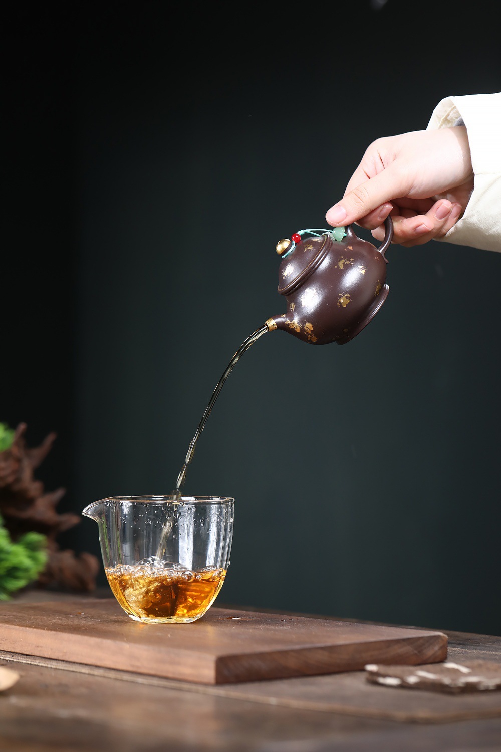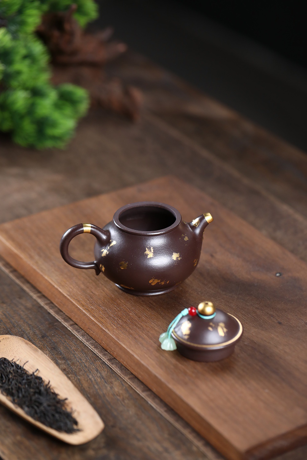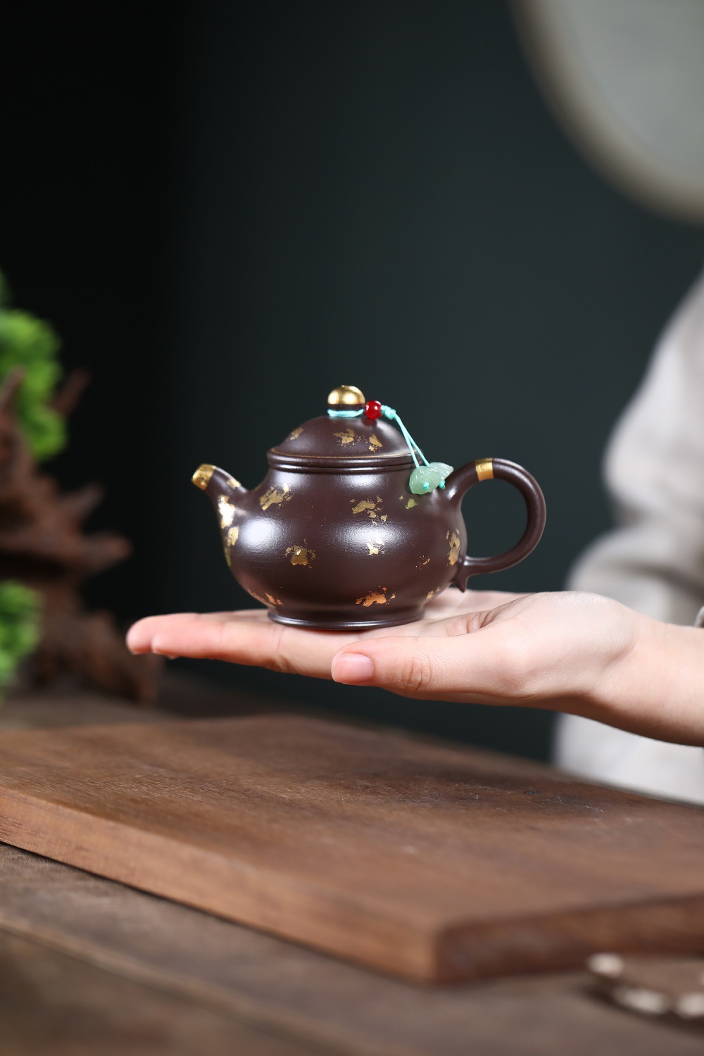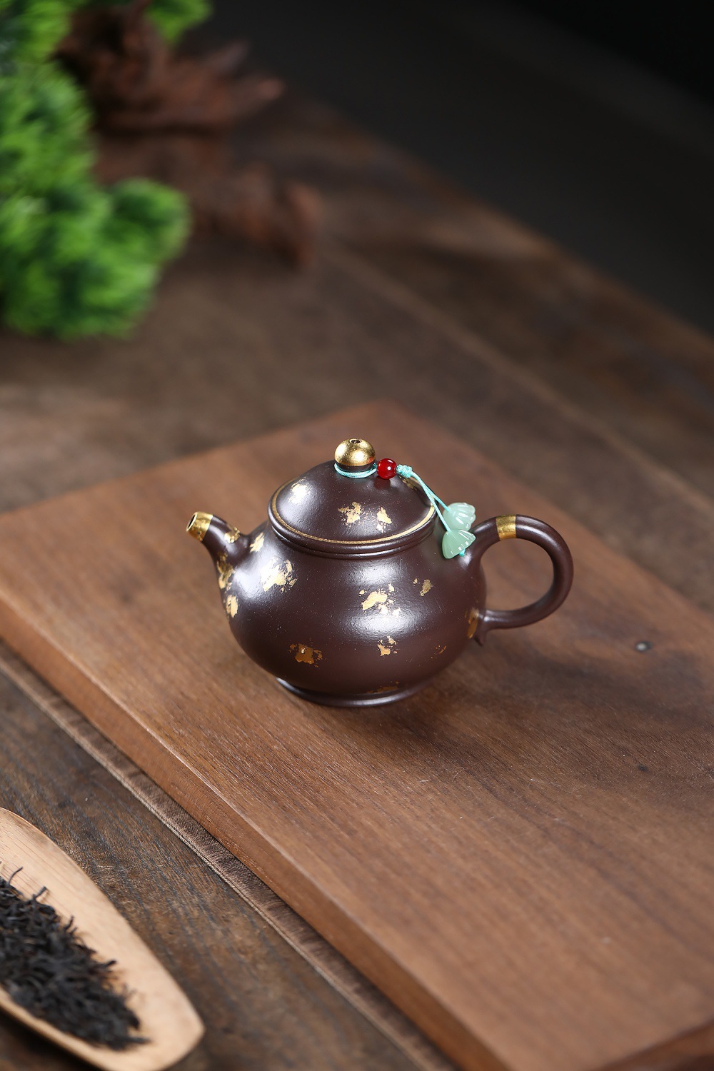 【泥料特性】砂土氣重,似淳實農民,日久使用,漸露鋒芒,養成變化溫潤莊重。紫砂是一種雙重氣孔結構的多孔性材質,氣孔微細,密度高。用紫砂壺沏茶,不失原味,且香不渙散,得茶之真香真味。紫砂使用越久,壺身色澤越發光亮照人。