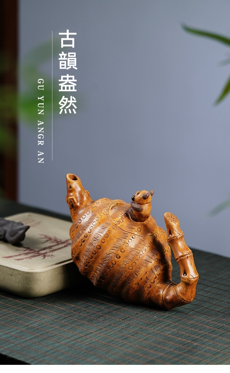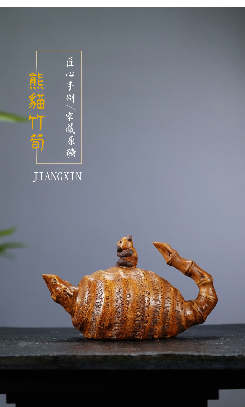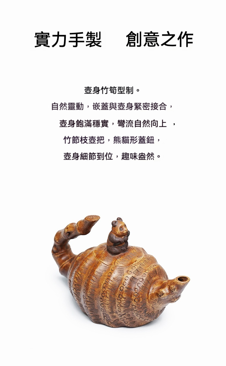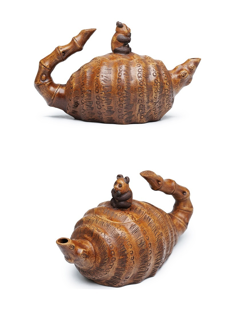 宜興紫砂壺原礦老段泥熊貓竹筍仿生壺(420ml)