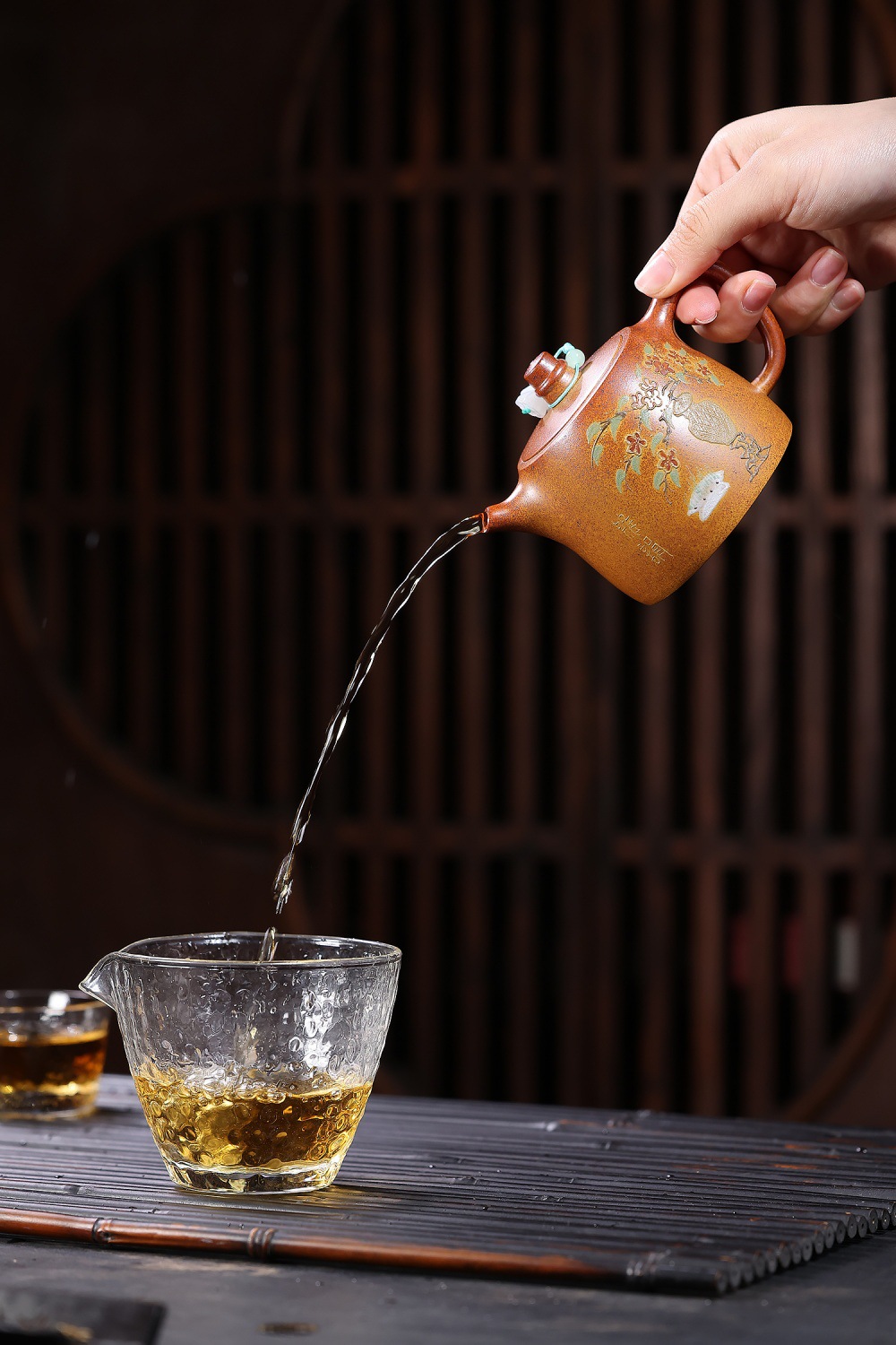 【作品介紹】品茗賞壺間,茶味、畫意、春色與閒適心境,渾然一體。需兼顧泥料特質、壺型神韻、手感及實用之美。名字開闊大氣,充滿時間哲思。作品深蘊內涵,做工細緻典雅,型用完備,器形端莊嚴,比例協調,結構嚴謹,泥色潤澤。造型簡練、色澤淳樸、大方古雅,此款壺形線條流暢,壺把,壺嘴,壺身一氣呵成,是收藏把玩的好壺。