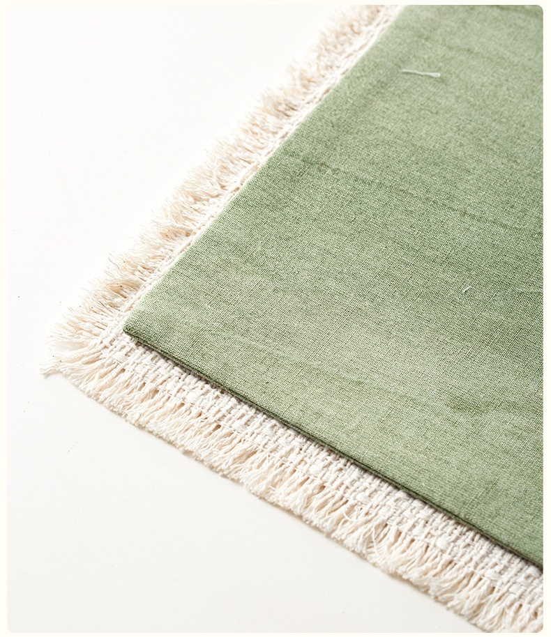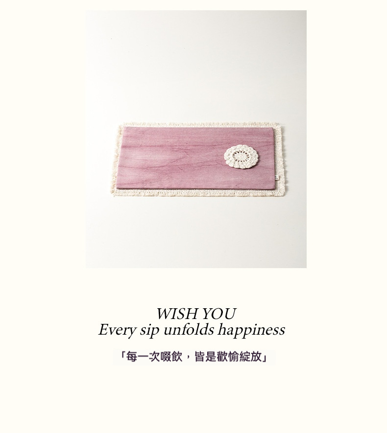 棉麻材質細緻且垂墜感優良,這款茶席擺在榻榻米上很有日式風情。