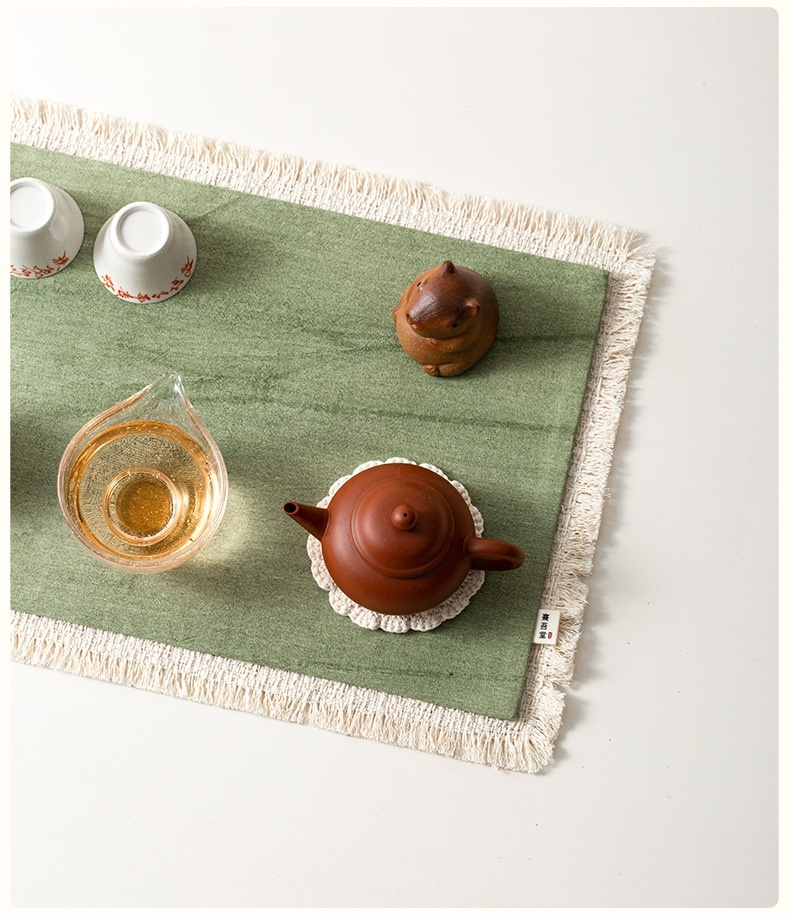 這款雙層茶席的棉麻質感很好,厚實的布料鋪在深色木桌上非常有禪意。炒色的視覺效果很自然,不會過於搶眼,擺上茶具後整個空間的氛圍感直接提升,非常推薦給喜歡茶空間佈置的人。