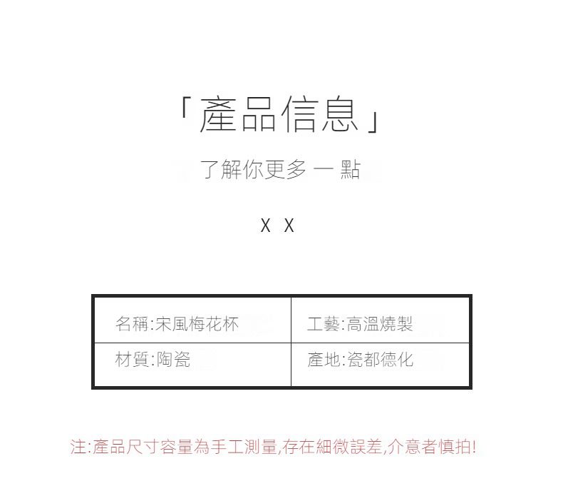 白瓷梅花茶杯主人杯選用高品質材質,耐用易清潔,造型考究且穩定更加有序整潔,增添生活儀式感與格調,滿足自用、送禮與收藏需求。白瓷梅花茶杯主人杯皆嚴選材質與職人工藝,展現實用性與審美兼具的體驗。即日起滿三件享9折、五件享85折,立即選購,為生活添上南山居的儀式感。