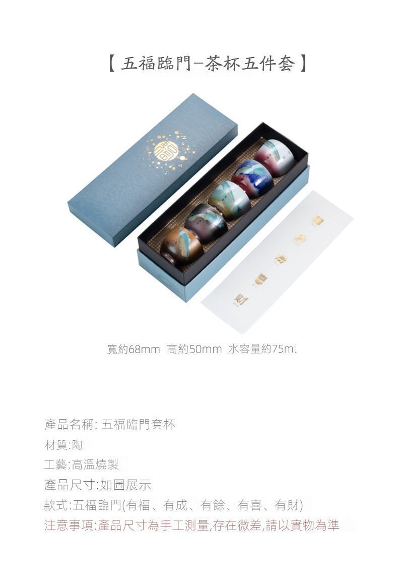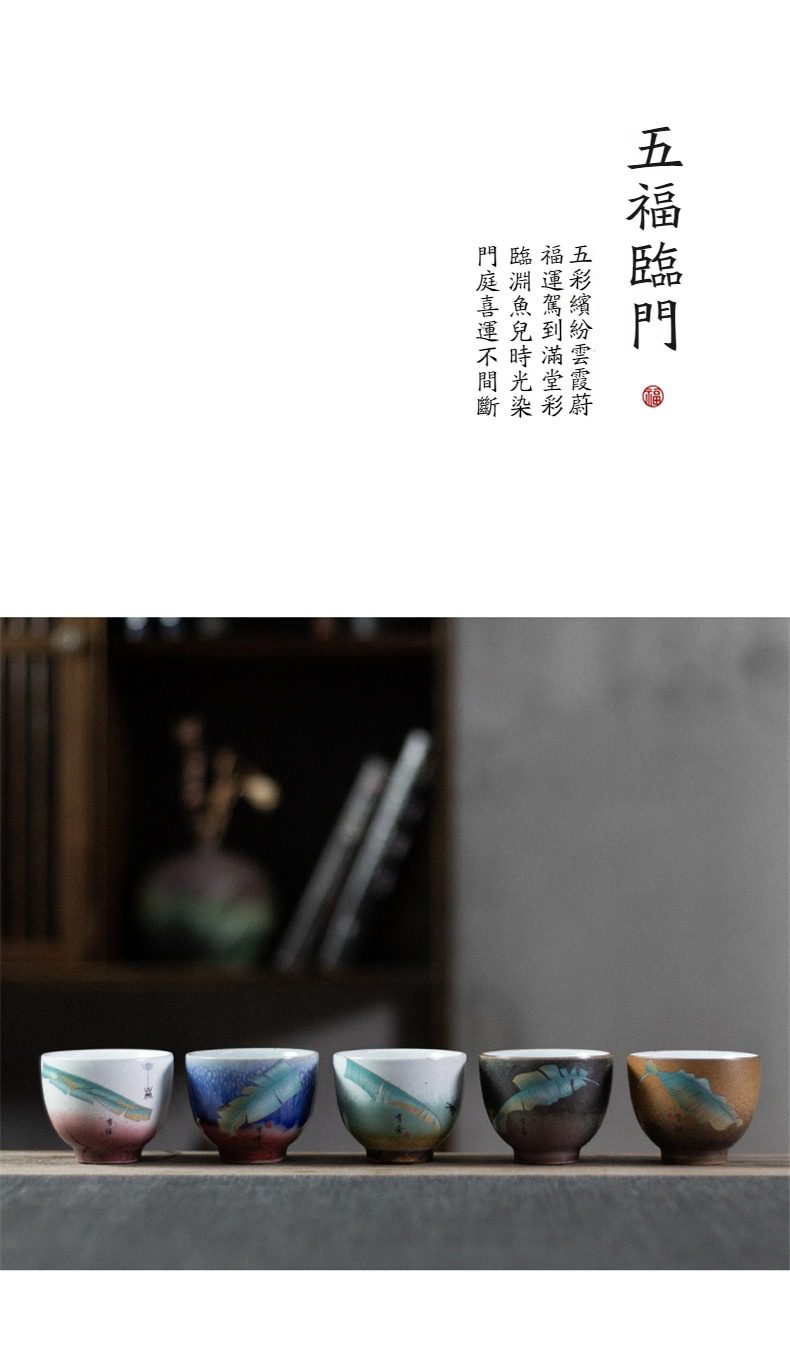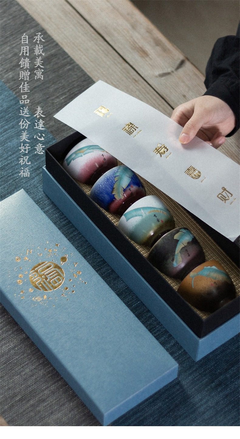 自從買了這套五福臨門品茗杯,每天喝茶的心情都好了起來。窯變的幻彩在燈光下非常美,杯子手感紮實不燙手,讓普通的午後時光變得很有氛圍。