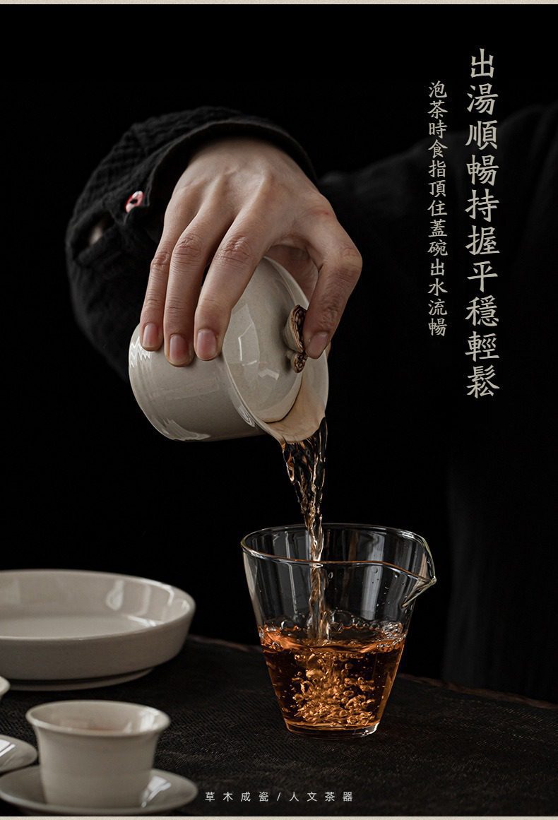 入手這款蓋碗後,我的品茶體驗有了全面的升級。它的設計不僅美觀,在細節上也非常講究,蓋碗的大小與重量設計得恰到好處,即使長時間泡茶手也不會感到痠累。草木灰的色澤在燈光下非常典雅,不僅具備高度的實用性,還能為茶席增添不少藝術氣息。每次倒茶時,出水順暢、斷水俐落的感受都讓人非常愉悅。這套茶具完美地平衡了美感與功能,是我近期買過最滿意的物件之一,真的很推薦大家入手。