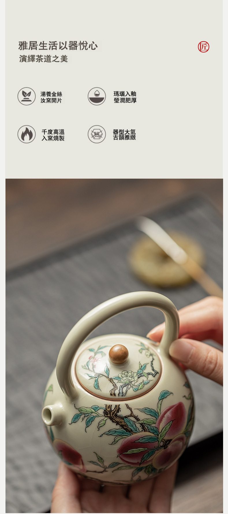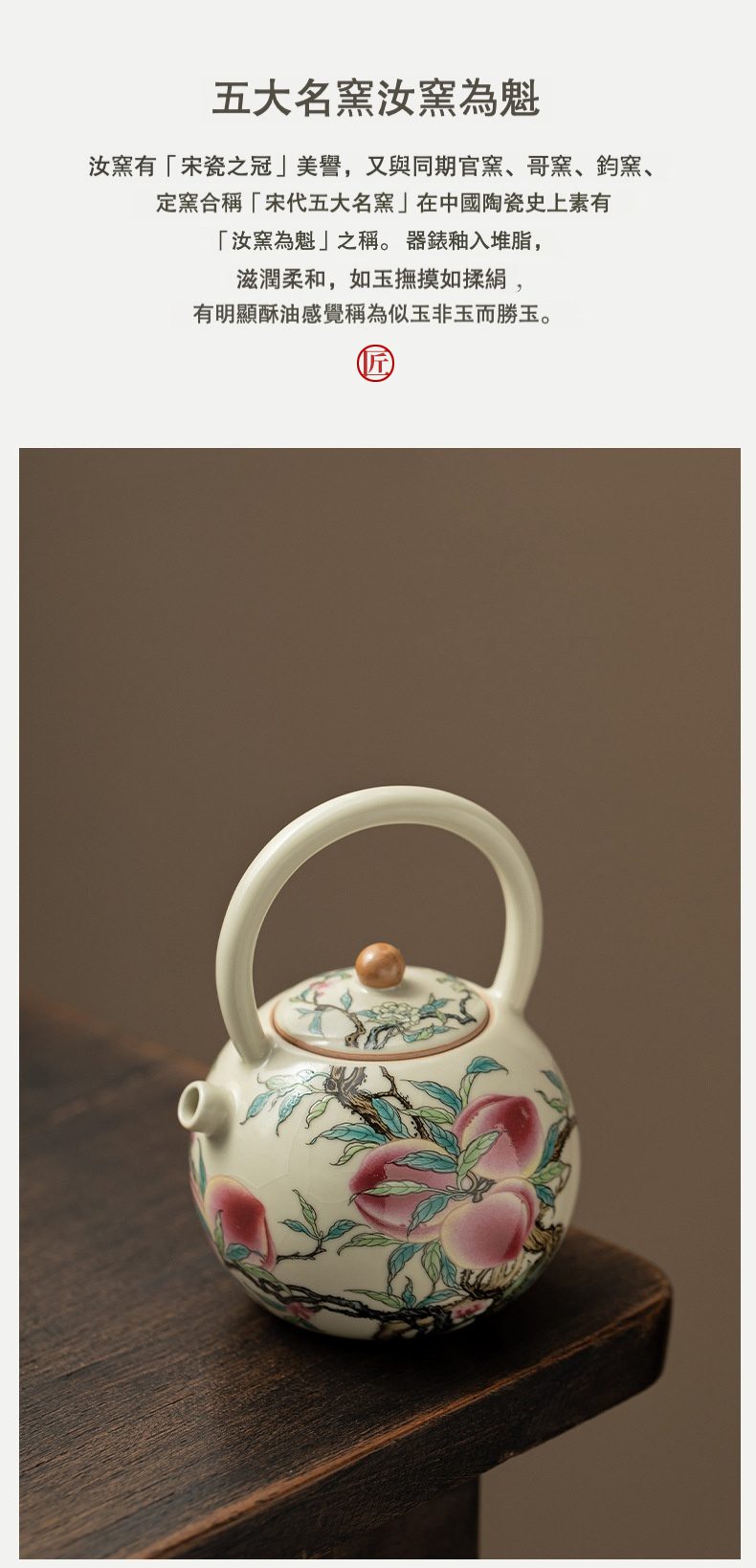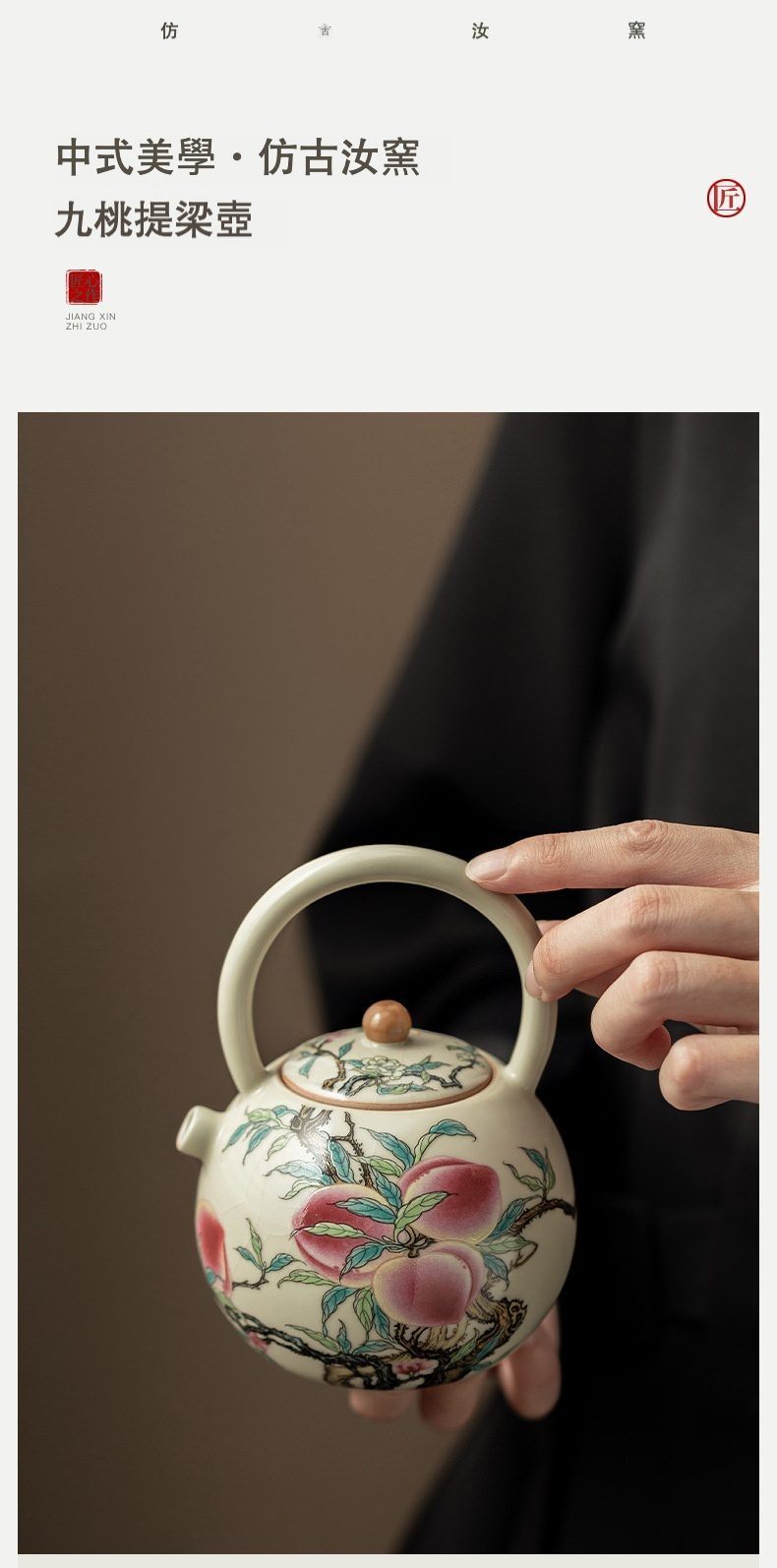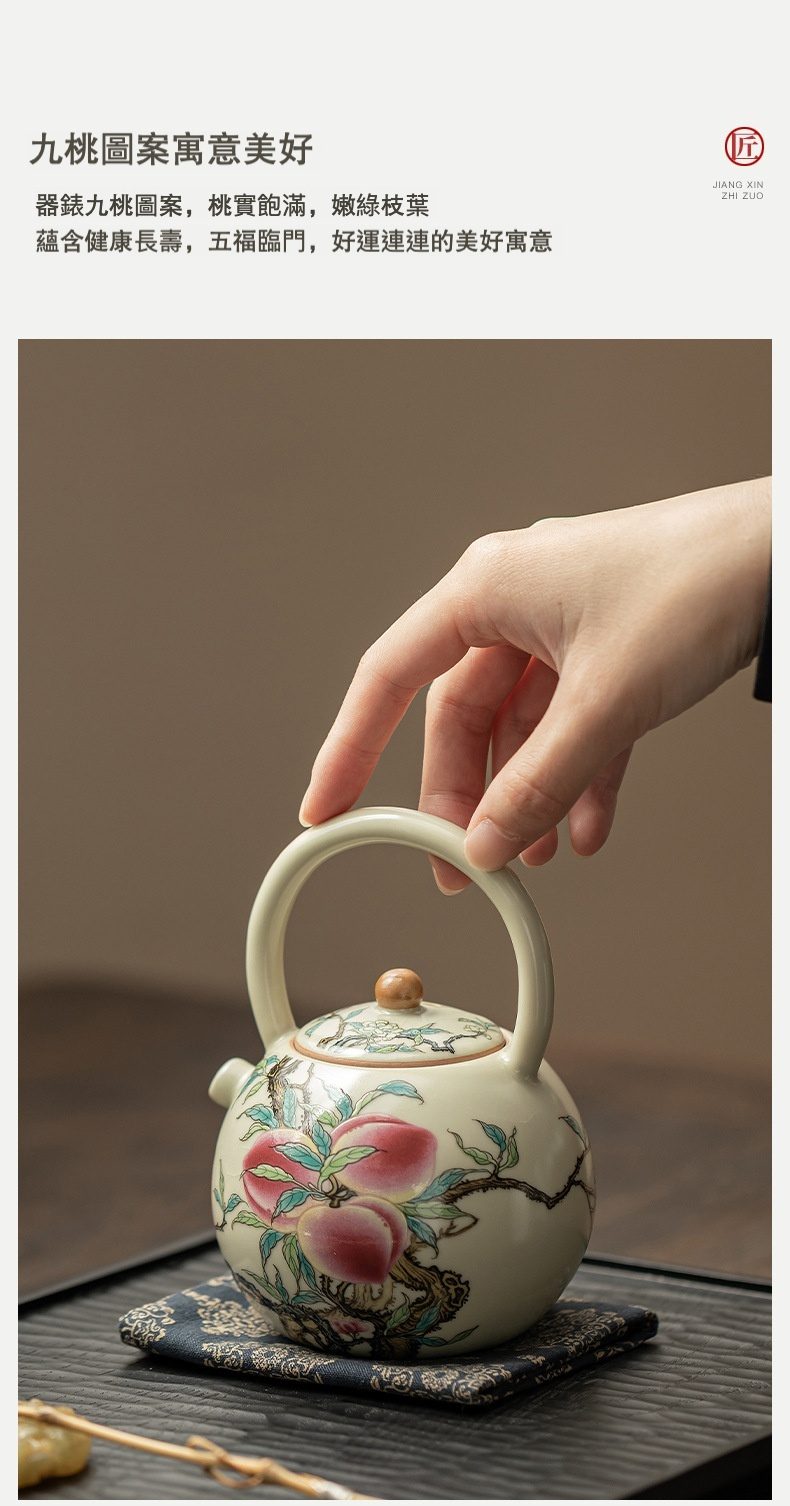 | 規格 | 仿古汝窯 – 九桃提梁壺 ( 簡裝 ) |