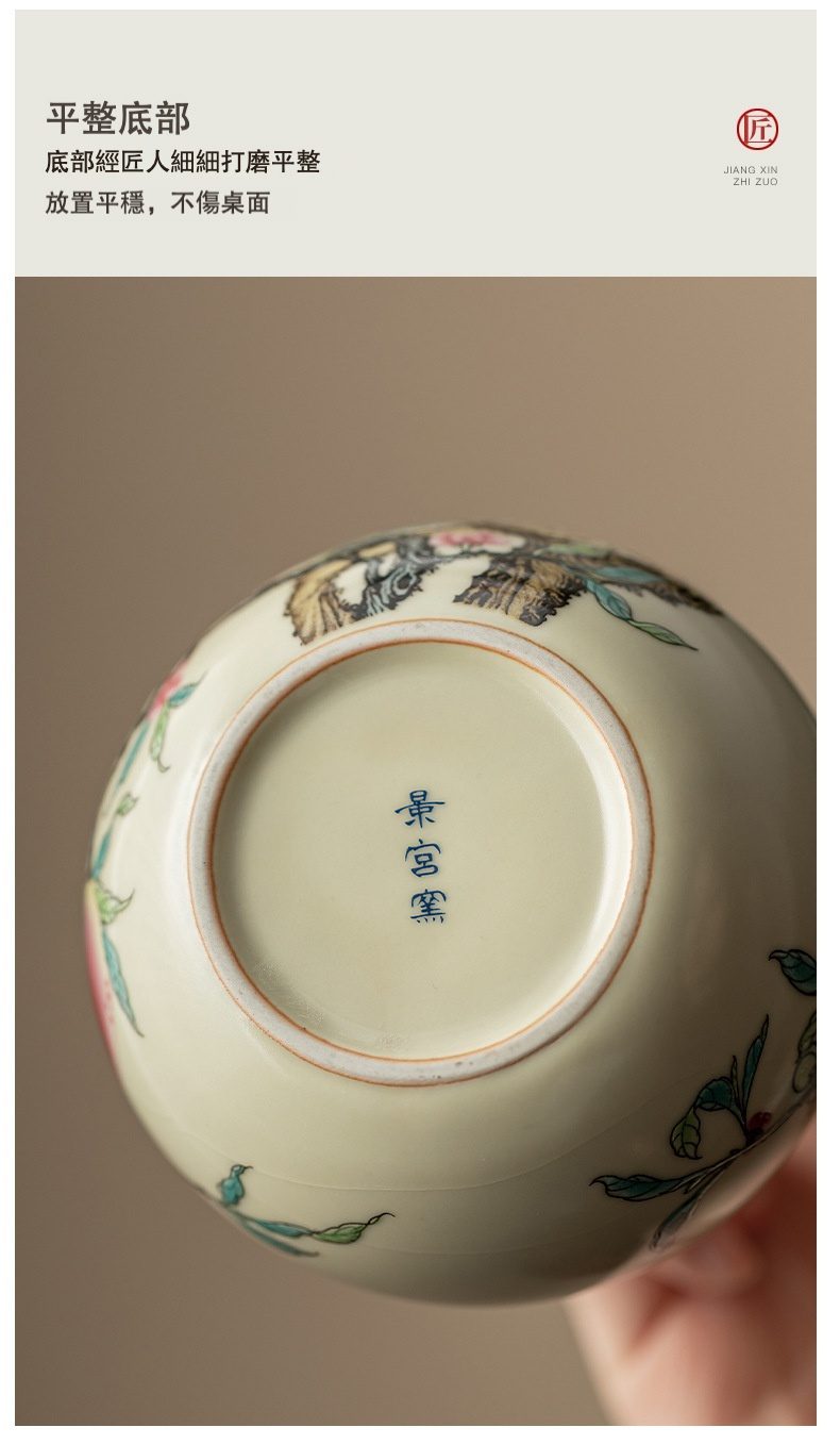 精美九桃紋飾:以手繪工法描繪九顆桃子,象徵「九如」長壽吉祥