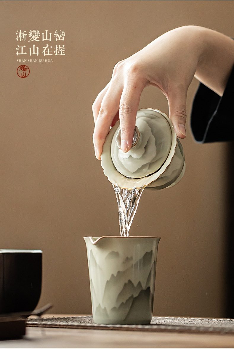 山水畫意紋飾:層層山巒手繪於器身,如霧中山景,雅緻深遠