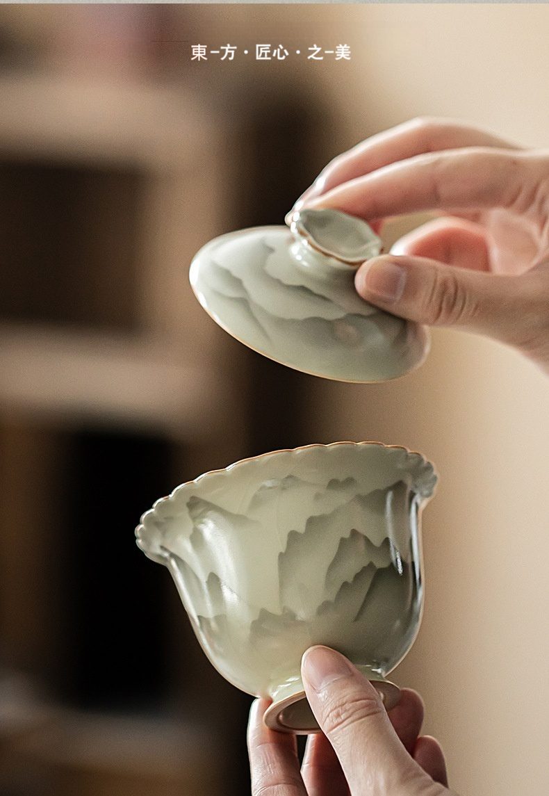 茶席藝術結合器型:蓋碗口沿、蓋珠、杯身比例協調,外觀美感與實用性兼具