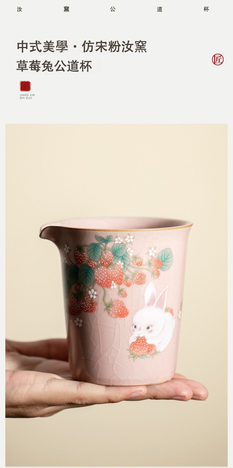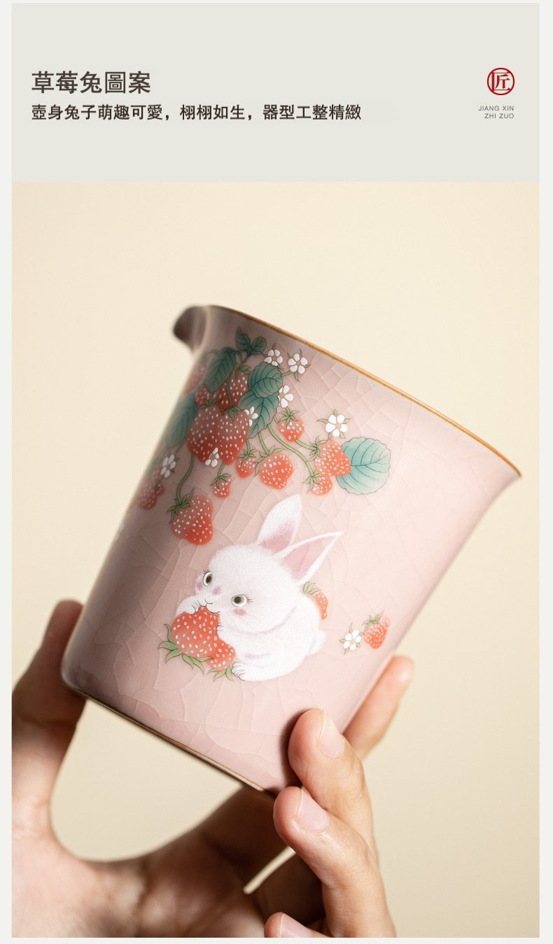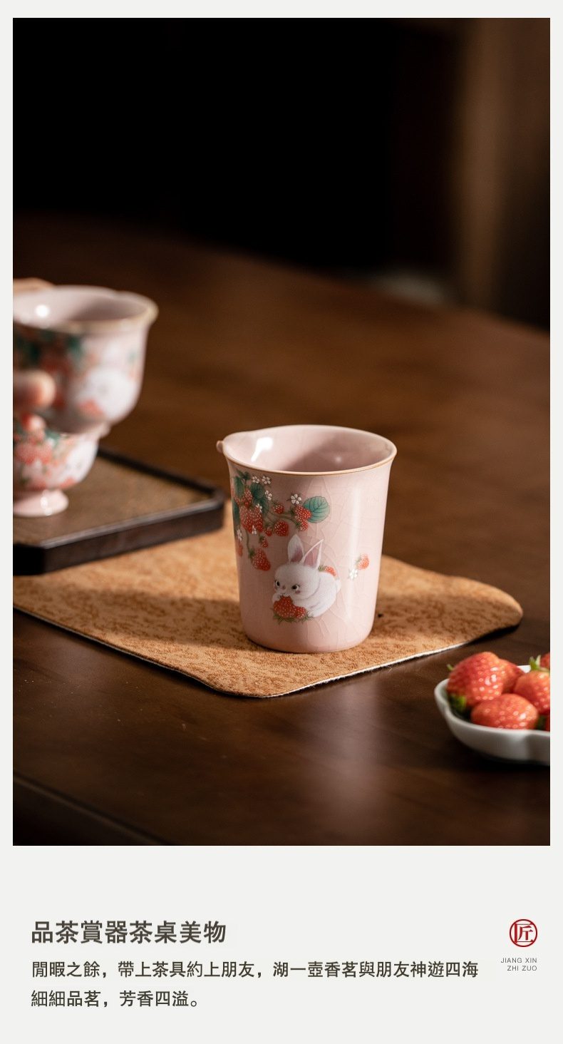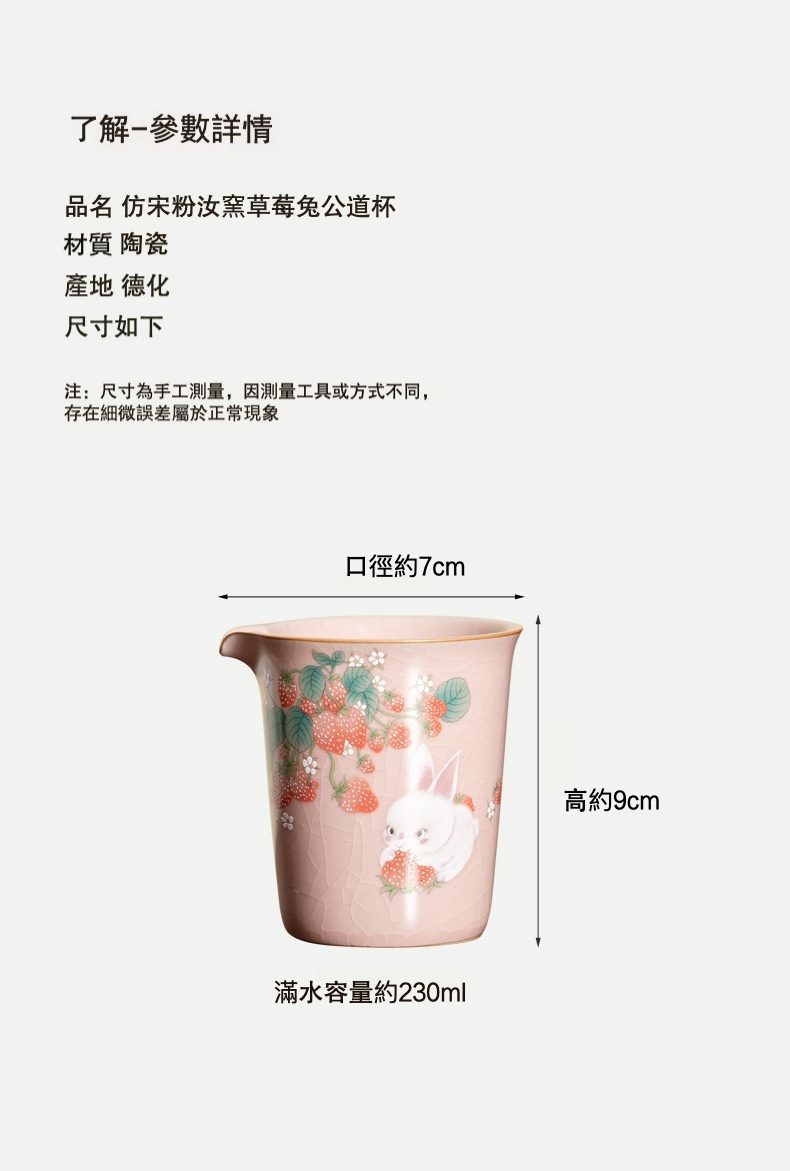 | 規格 | 仿宋粉汝窯 – 草莓兔公道杯 |