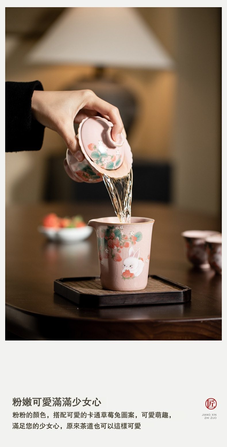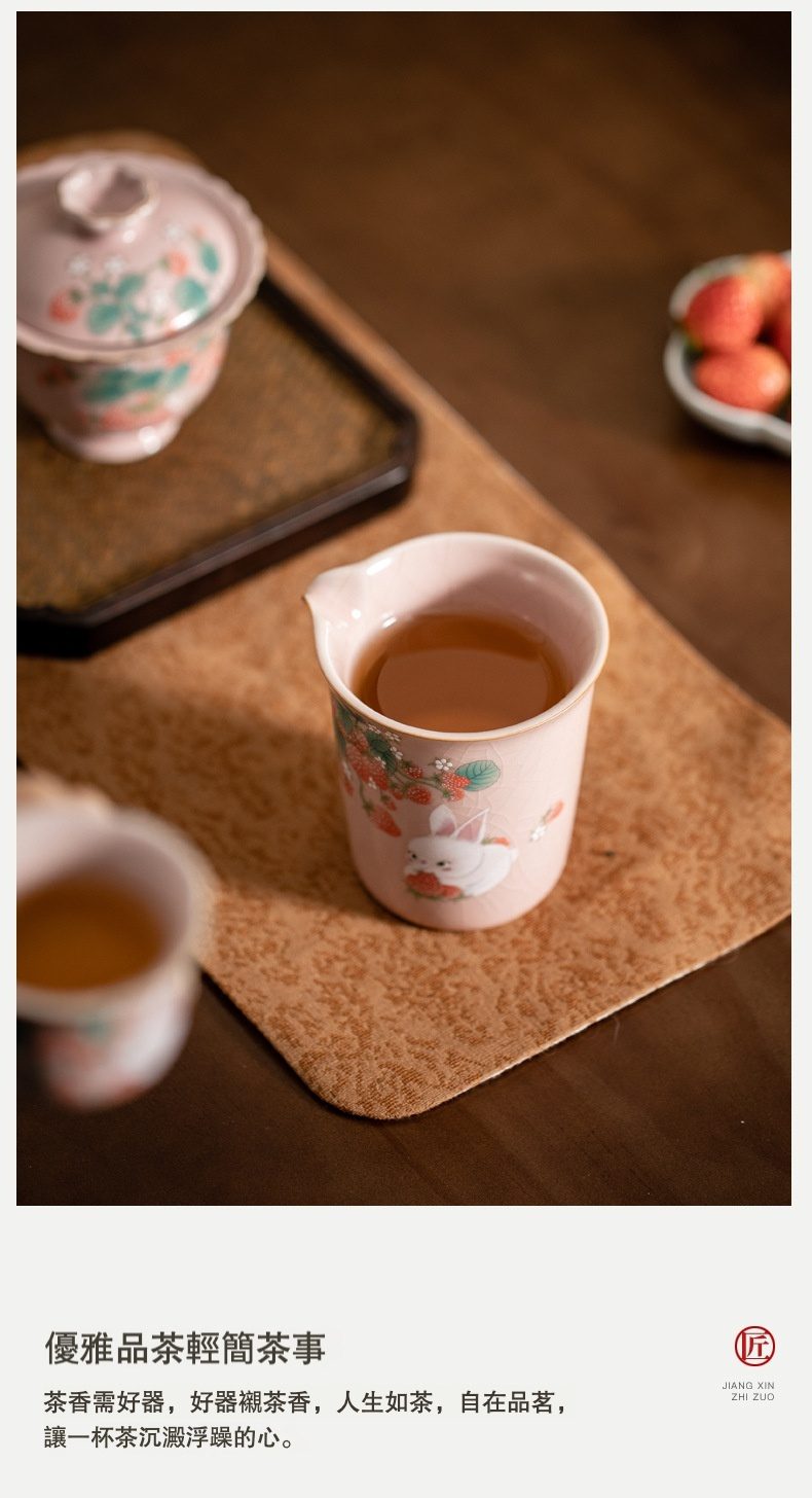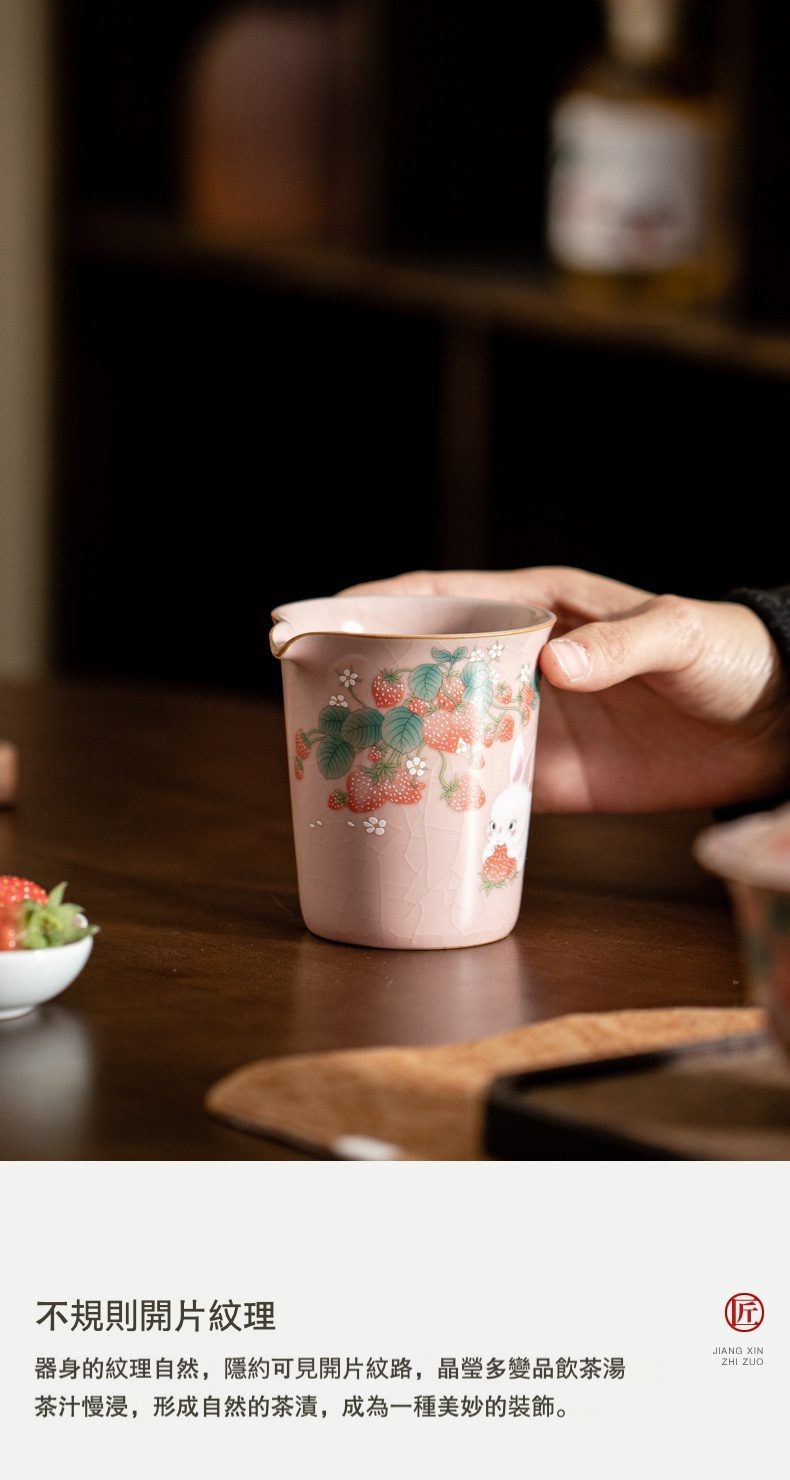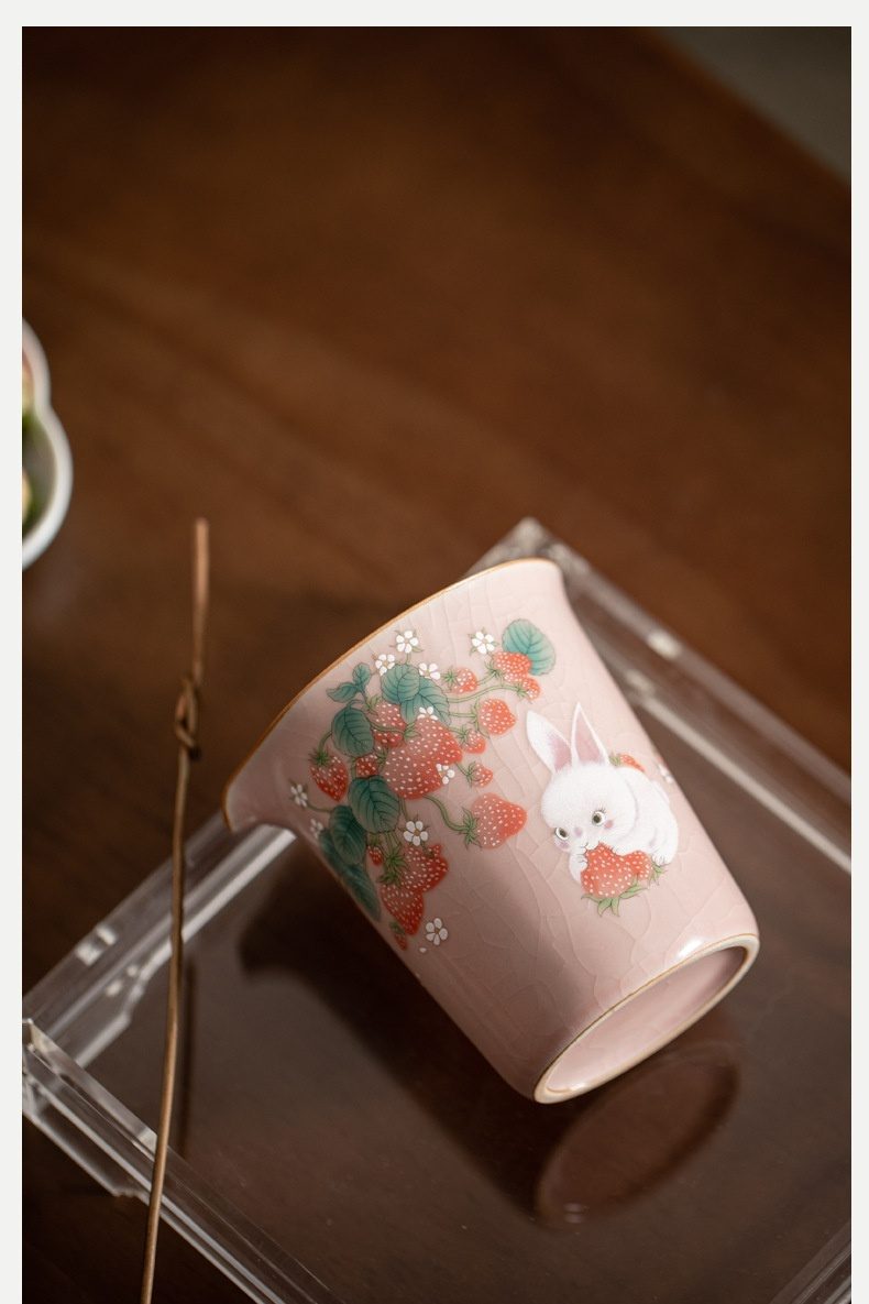 | 規格 | 仿宋粉汝窯 – 草莓兔公道杯 |