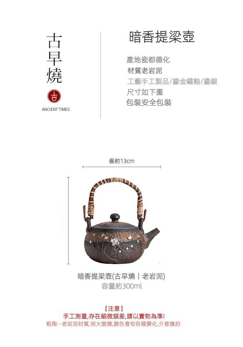 古早燒暗香提樑壺選用高品質材質,耐用易清潔,造型考究且穩定更加有序整潔,增添生活儀式感與格調,滿足自用、送禮與收藏需求。古早燒暗香提樑壺皆嚴選材質與職人工藝,展現實用性與審美兼具的體驗。即日起滿三件享9折、五件享85折,立即選購,為生活添上南山居的儀式感。
