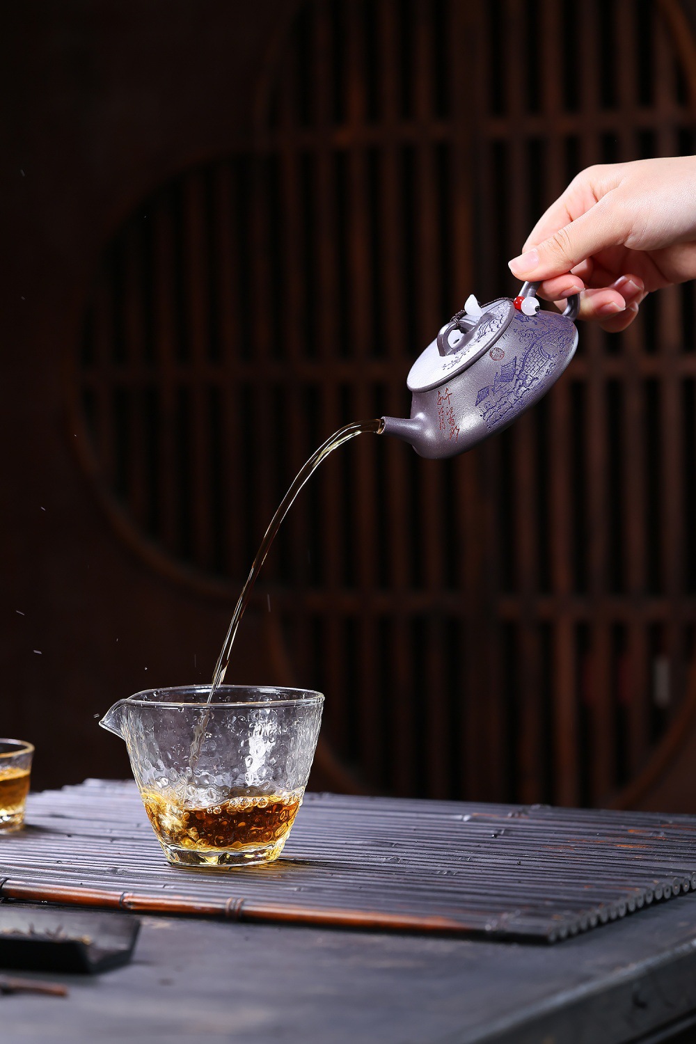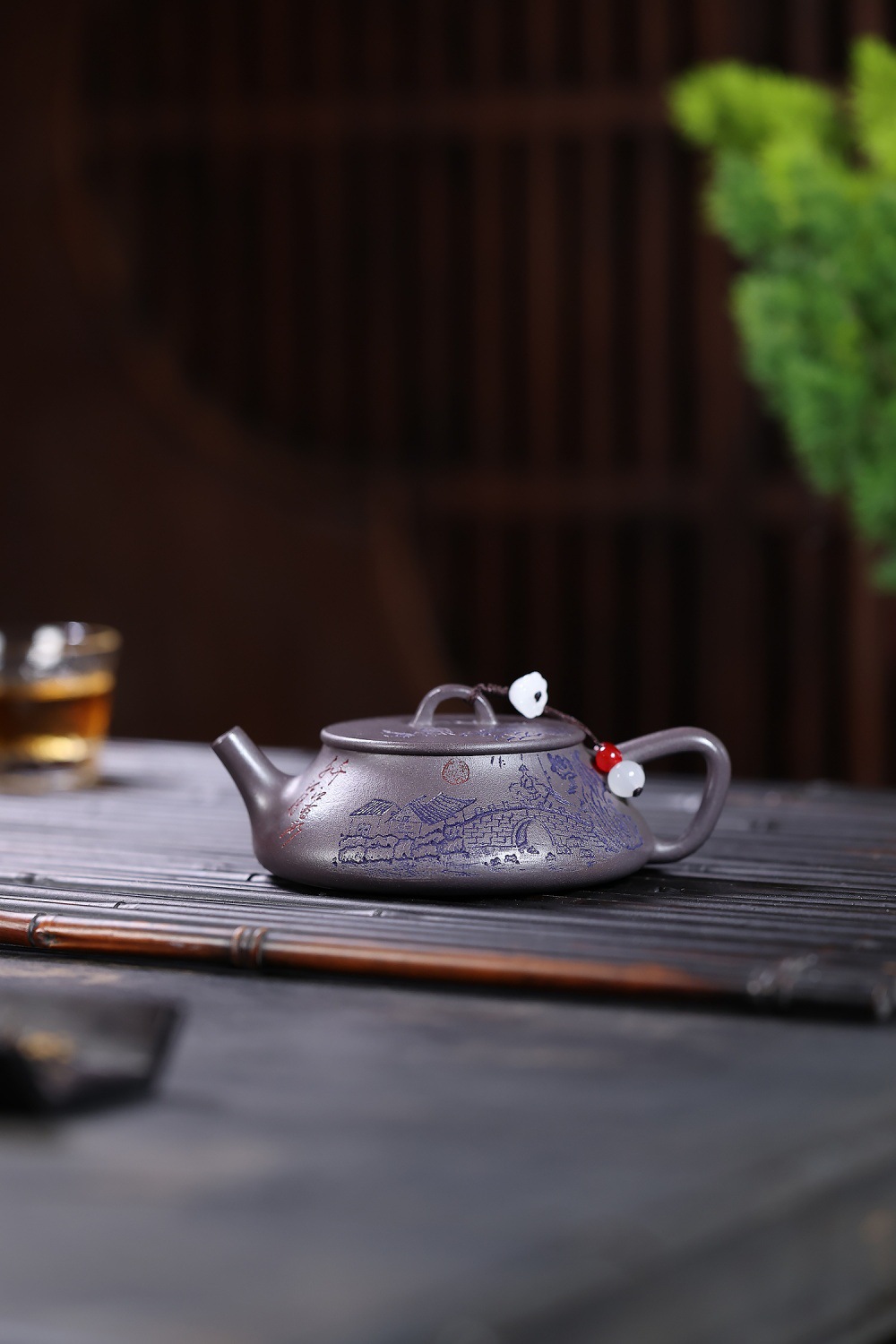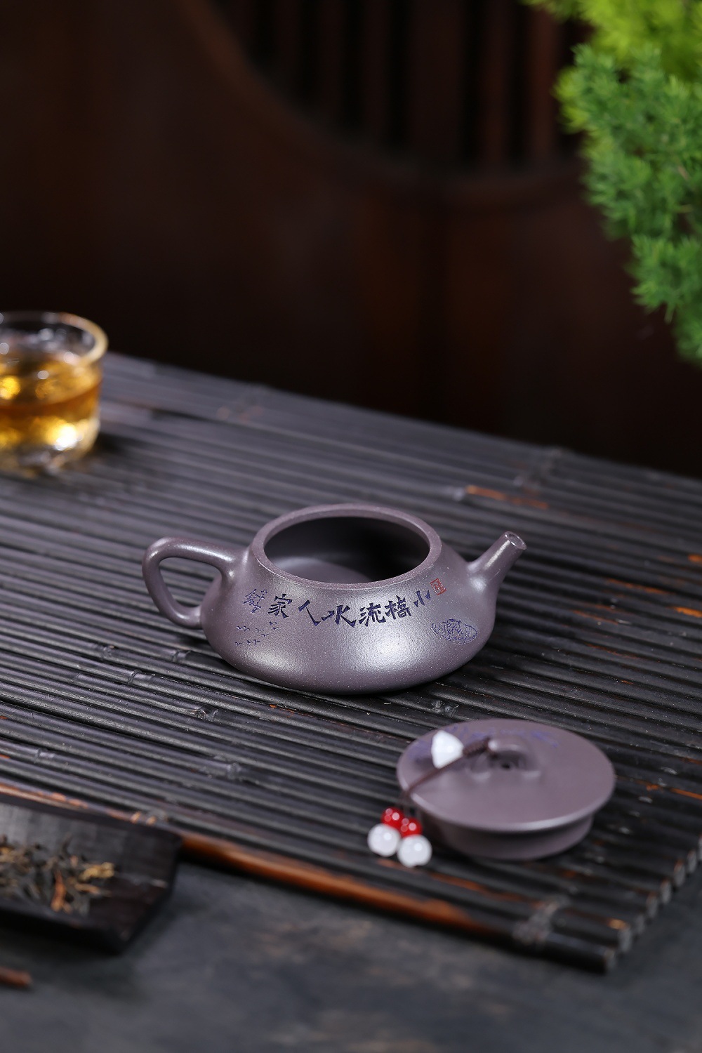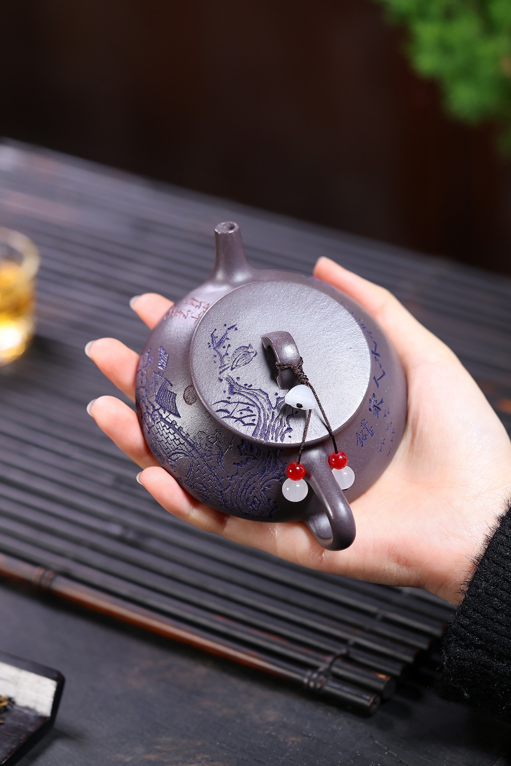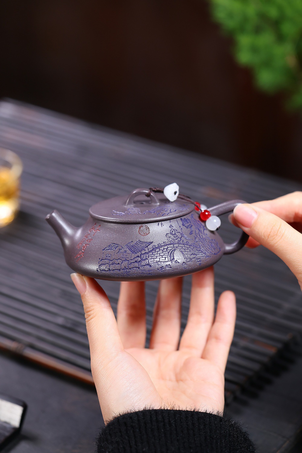 【泥料特性】砂土氣重,似淳實農民,日久使用,漸露鋒芒,養成變化溫潤莊重。紫砂是一種雙重氣孔結構的多孔性材質,氣孔微細,密度高。用紫砂壺沏茶,不失原味,且香不渙散,得茶之真香真味。紫砂使用越久,壺身色澤越發光亮照人。