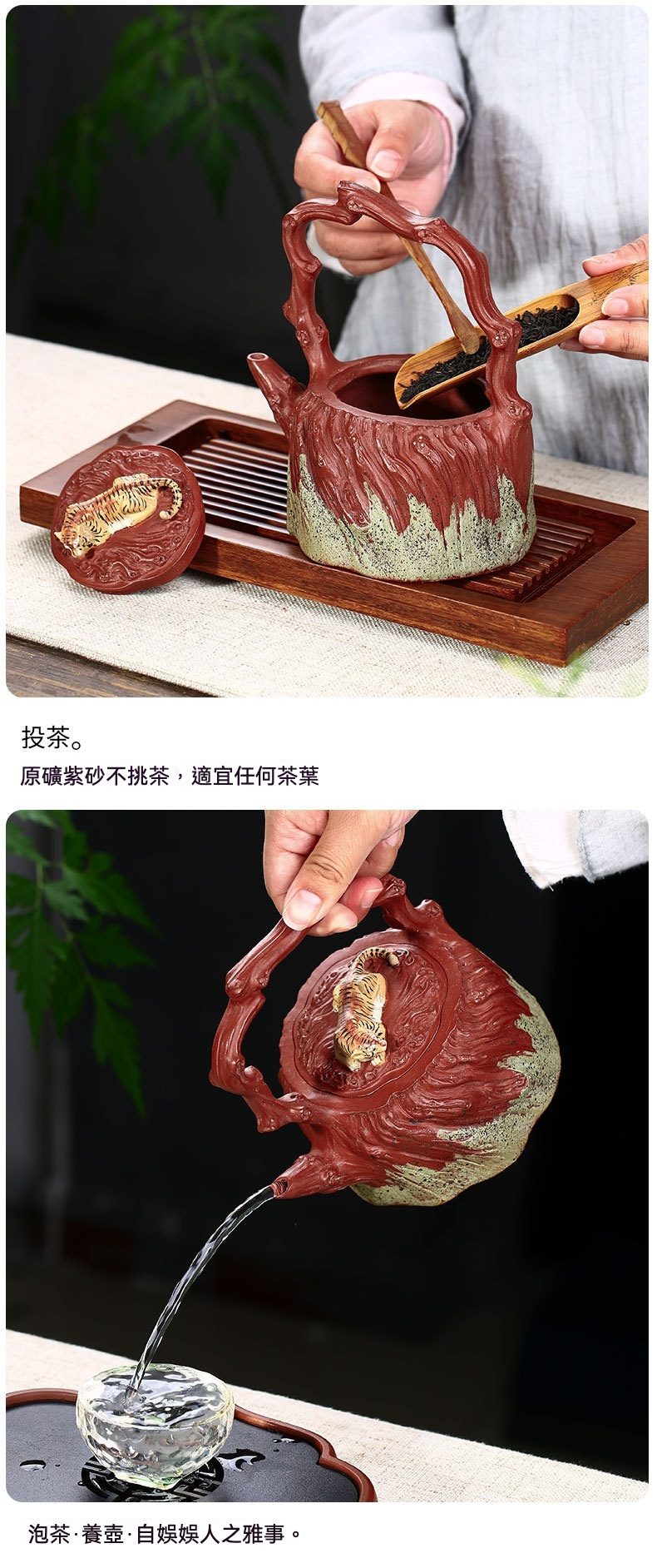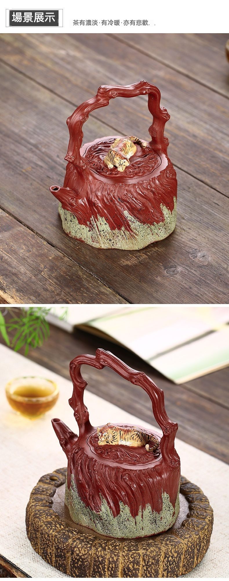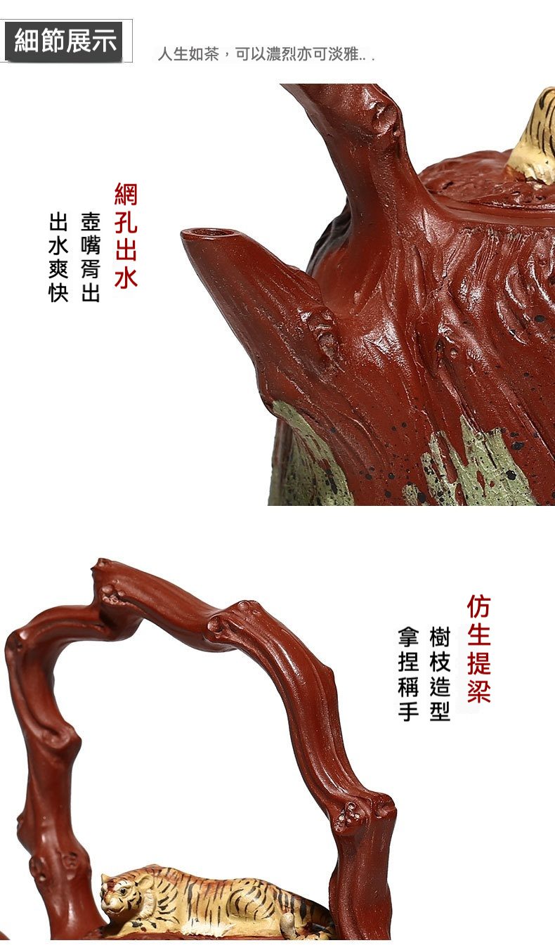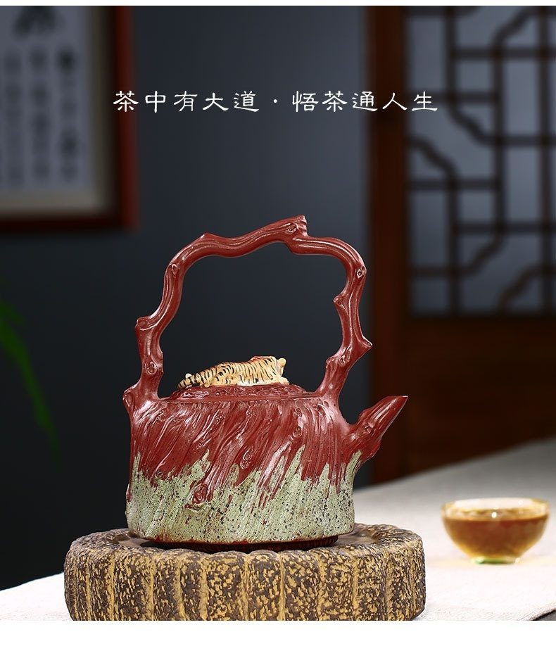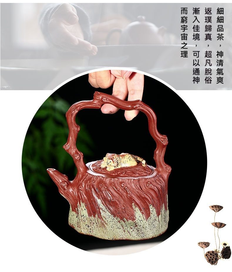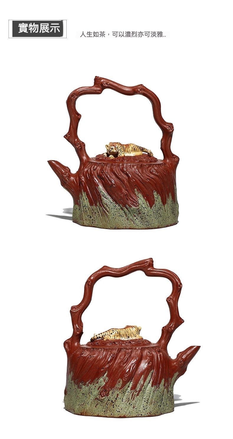 宜興紫砂壺原礦紅泥猛虎提梁仿生壺(510ml)