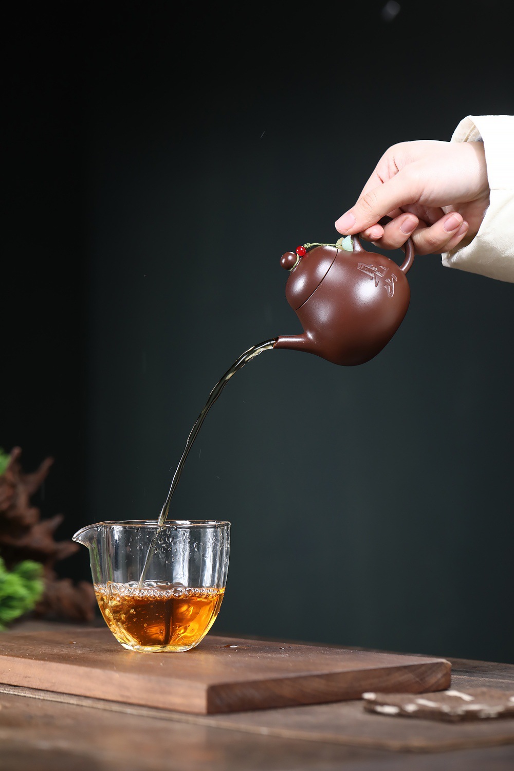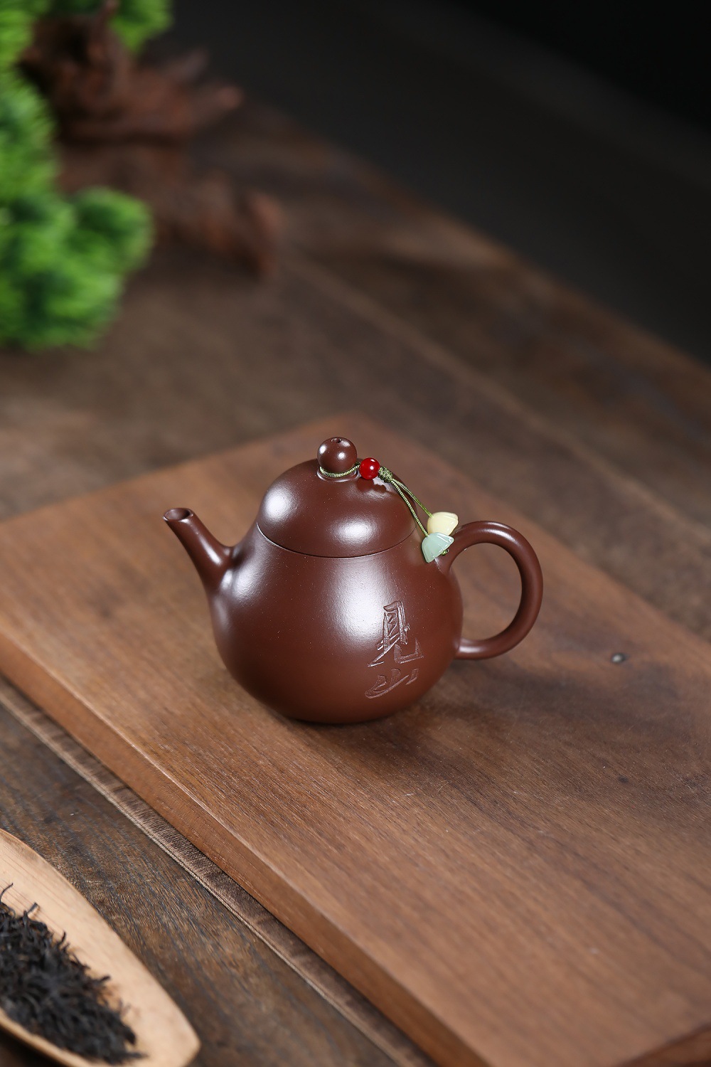【泥料特性】砂土氣重,似淳實農民,日久使用,漸露鋒芒,養成變化溫潤莊重。紫砂是一種雙重氣孔結構的多孔性材質,氣孔微細,密度高。用紫砂壺沏茶,不失原味,且香不渙散,得茶之真香真味。紫砂使用越久,壺身色澤越發光亮照人。