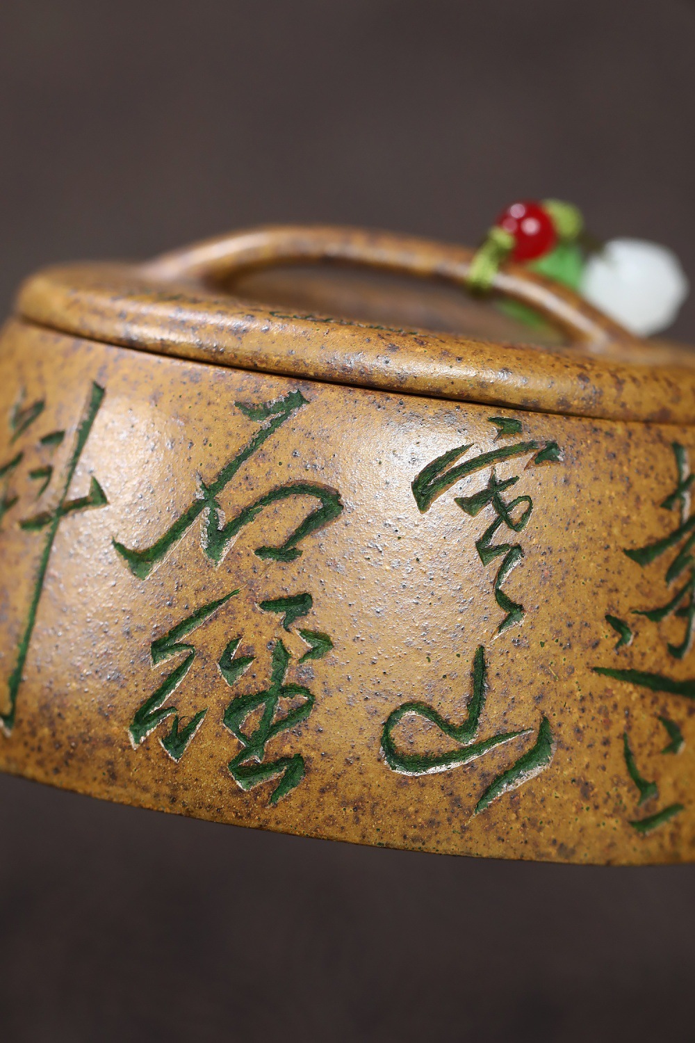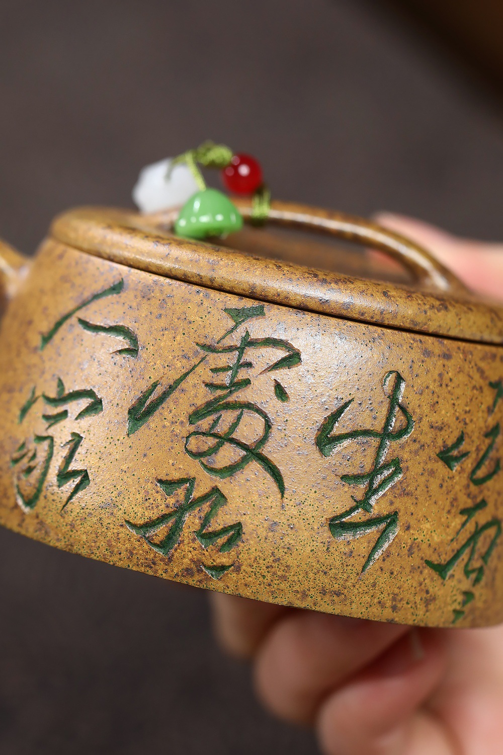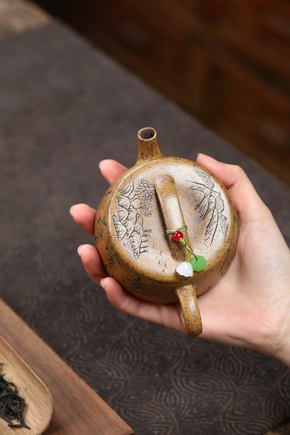 【泥料特性】砂土氣重,似淳實農民,日久使用,漸露鋒芒,養成變化溫潤莊重。紫砂是一種雙重氣孔結構的多孔性材質,氣孔微細,密度高。用紫砂壺沏茶,不失原味,且香不渙散,得茶之真香真味。紫砂使用越久,壺身色澤越發光亮照人。