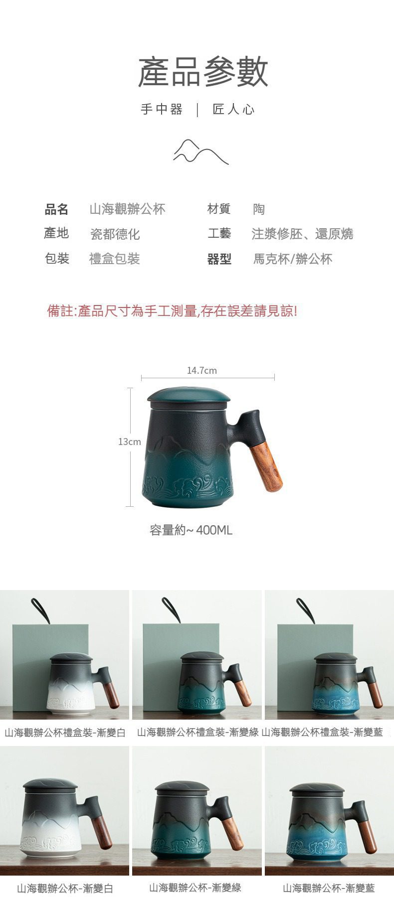 | 颜色 | 山海觀辦公杯-漸變白(禮盒裝), 山海觀辦公杯-漸變綠(禮盒裝), 山海觀辦公杯-漸變藍(禮盒裝), 山海觀辦公杯-漸變白(安全包裝), 山海觀辦公杯-漸變綠(安全包装), 山海觀辦公杯-漸變藍(安全包裝), 觀滄海辦公杯禮盒裝-漸變綠, 觀滄海辦公杯禮盒裝-漸變藍, 觀滄海辦公杯禮盒裝-漸變白, 觀滄海辦公杯-漸變綠(安全包裝), 觀滄海辦公杯-漸變藍(安全包裝), 觀滄海辦公杯-漸變白(安全包装), 觀滄海辦公杯豪華版(漸變綠), 觀滄海辦公杯豪華版(漸變藍), 觀滄海辦公杯豪華版(漸變白), 山海觀辦公杯豪華版(漸變綠), 山海觀辦公杯豪華版(漸變藍), 山海觀辦公杯豪華版(漸變白) |