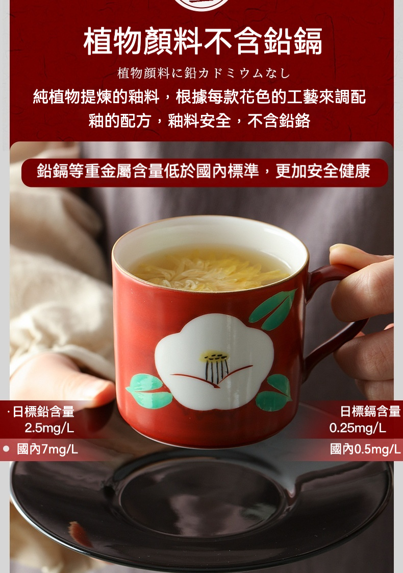 這組杯子真的太美了!有田燒的質感名不虛傳,釉面溫潤透亮,手繪山茶花的線條非常生動自然。杯子重量適中,握起來特別舒服。搭配碟子一起使用,喝咖啡時更有日式靜謐感,整體的品質與設計都很出色,非常滿意。