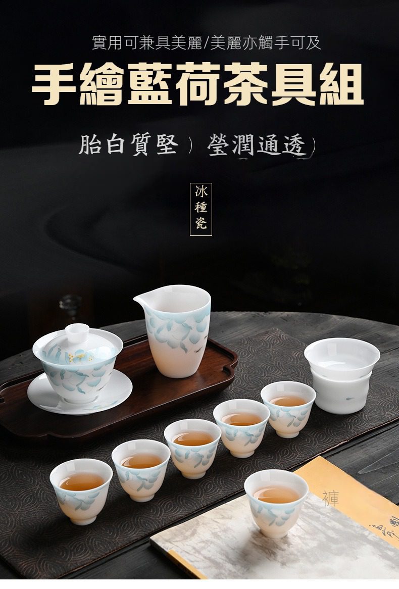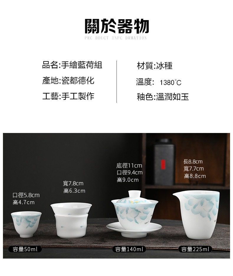 手繪藍荷花茶具套組選用高品質材質,耐用易清潔,造型考究且穩定更加有序整潔,增添生活儀式感與格調,滿足自用、送禮與收藏需求。手繪藍荷花茶具套組皆嚴選材質與職人工藝,展現實用性與審美兼具的體驗。即日起滿三件享9折、五件享85折,立即選購,為生活添上南山居的儀式感。