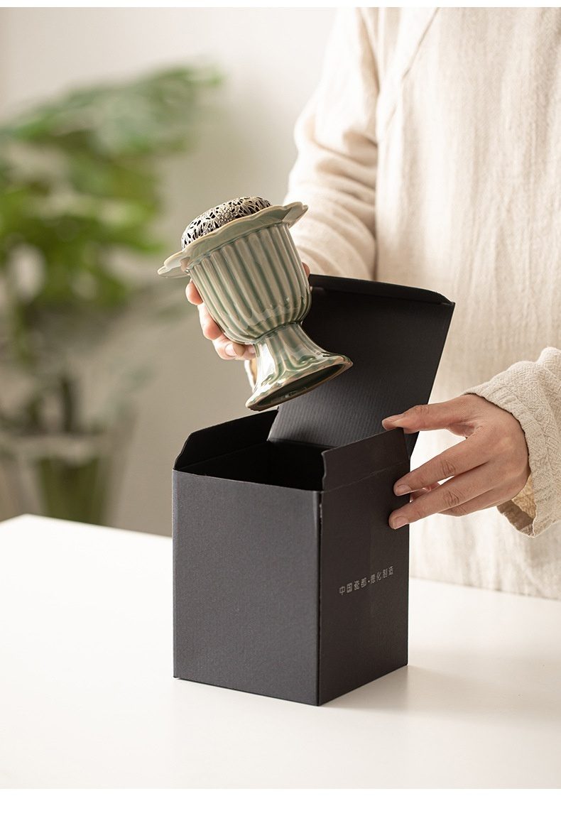 蓋頂以手工雕花銅蓋搭配鏤空設計,不僅提升通風助燃功能,更讓香煙從花紋間緩緩逸出,創造禪意詩境。