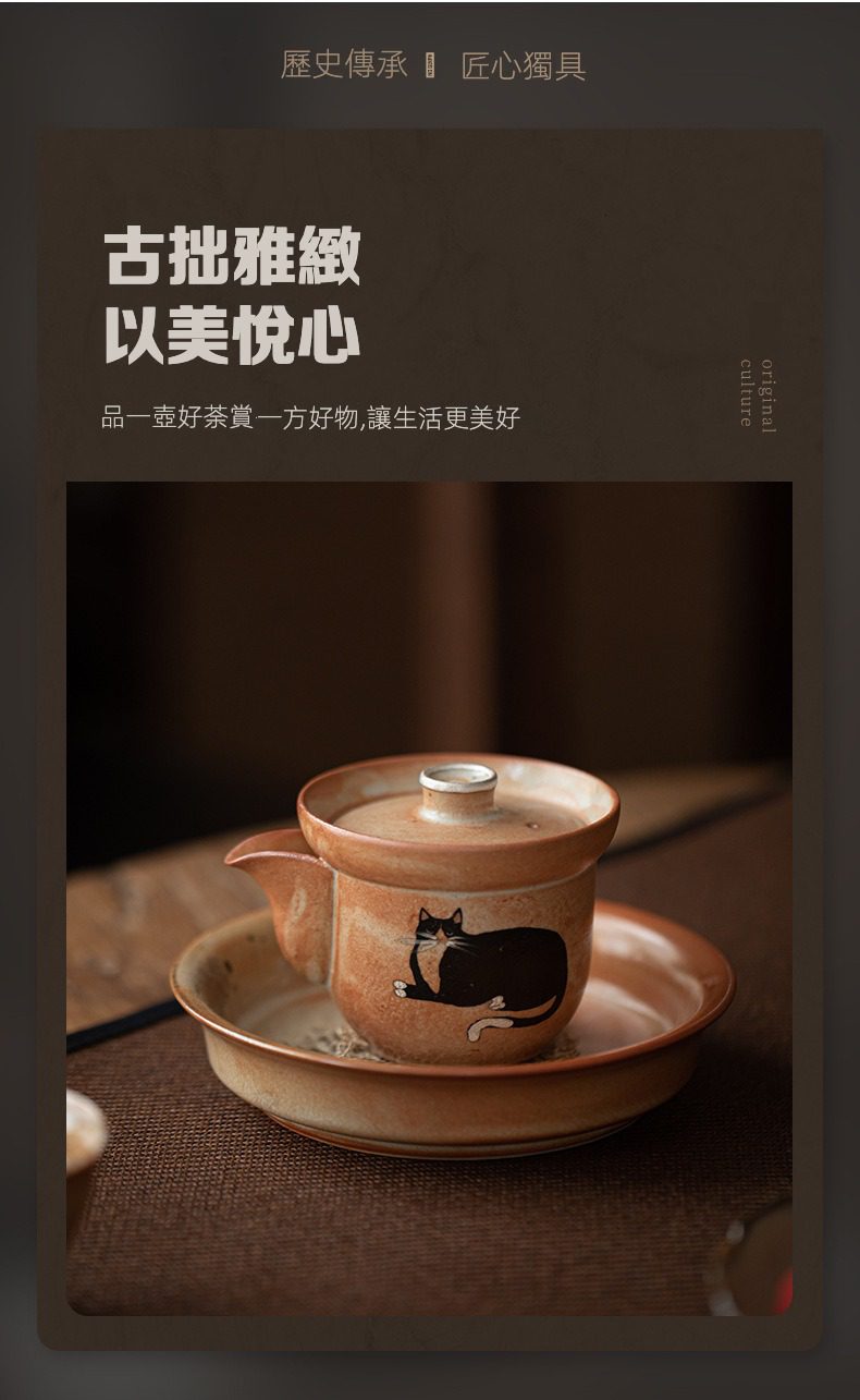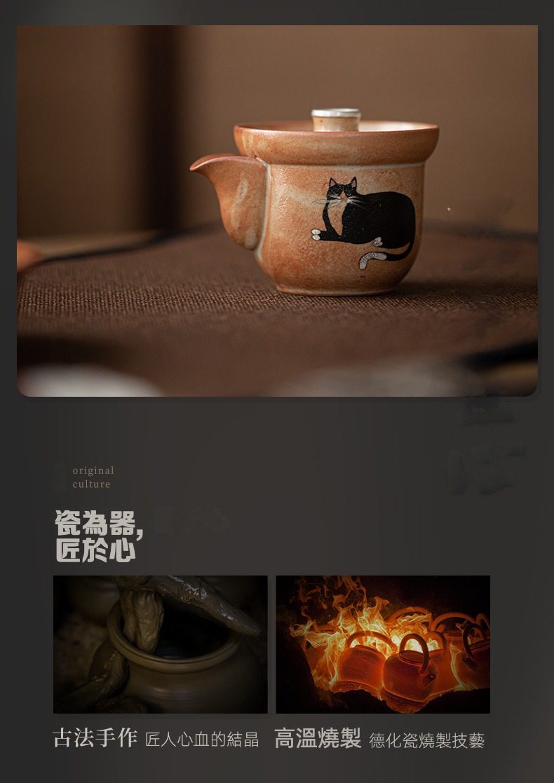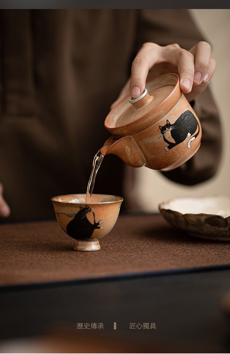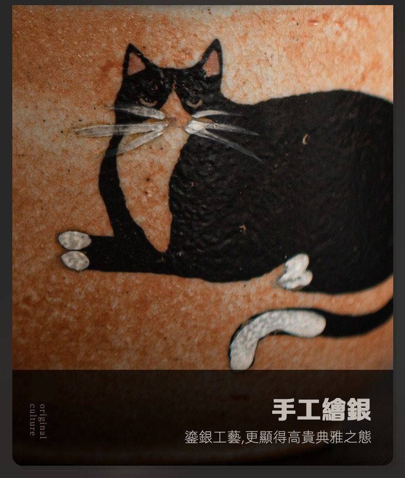 日式志野貓柴燒手抓壺