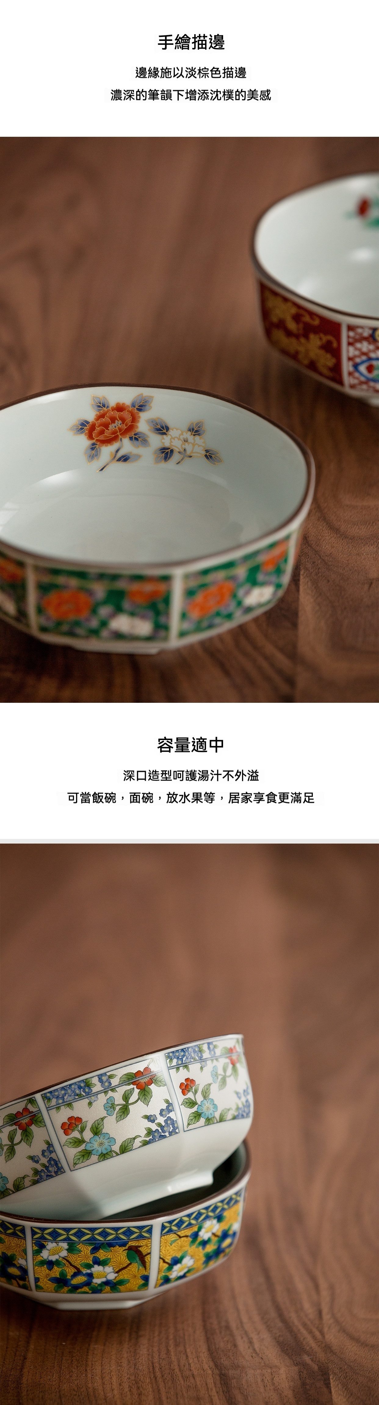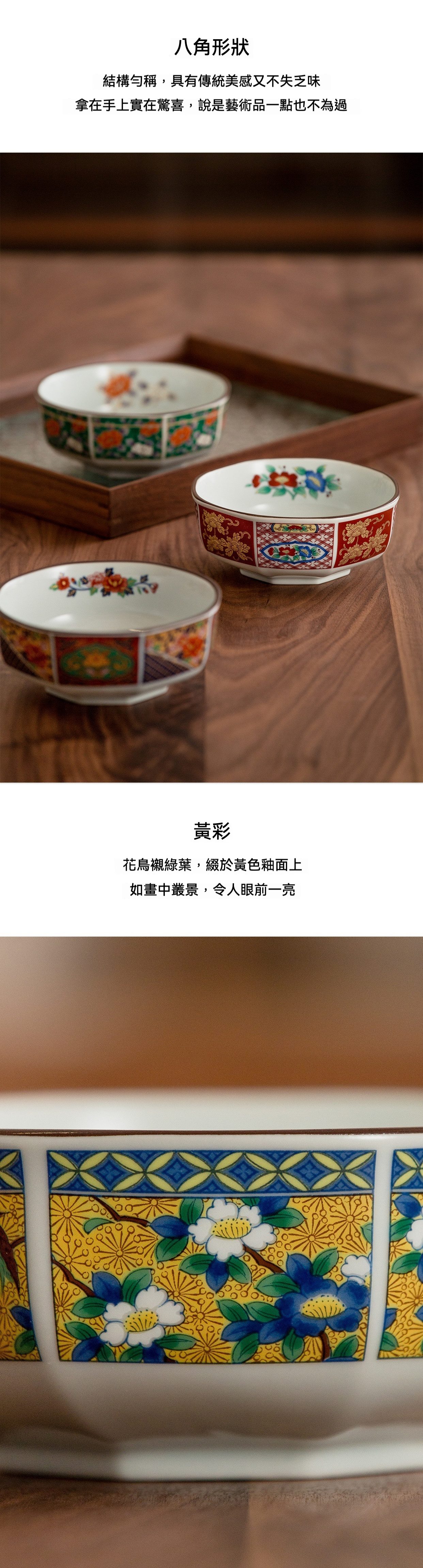 品名:宮廷染錦八角飯缽(黃彩/綠彩/茶花/杜丹/桔梗)