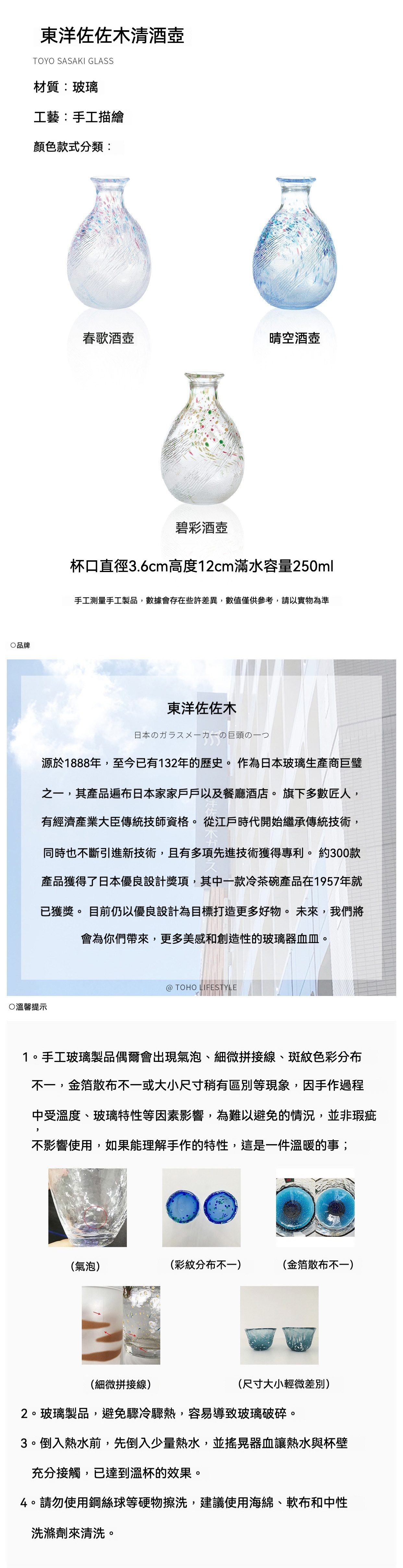 | 規格 | 春歌酒壺, 晴空酒壺, 碧彩酒壺, 清池清酒壺 |