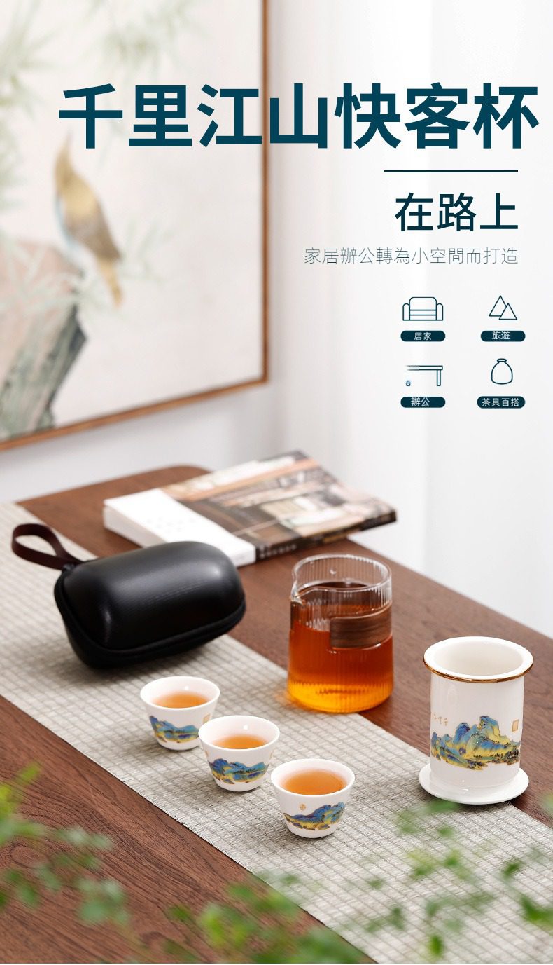 白瓷千里江山快客杯選用高品質材質,耐用易清潔,造型考究且穩定更加有序整潔,增添生活儀式感與格調,滿足自用、送禮與收藏需求。白瓷千里江山快客杯皆嚴選材質與職人工藝,展現實用性與審美兼具的體驗。即日起滿三件享9折、五件享85折,立即選購,為生活添上南山居的儀式感。
