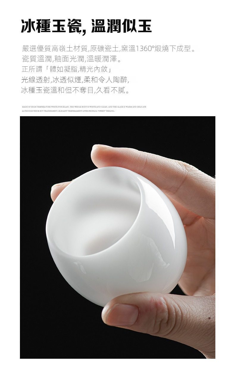 白瓷羊脂玉蛋形品茗杯選用高品質材質,耐用易清潔,造型考究且穩定更加有序整潔,增添生活儀式感與格調,滿足自用、送禮與收藏需求。白瓷羊脂玉蛋形品茗杯皆嚴選材質與職人工藝,展現實用性與審美兼具的體驗。即日起滿三件享9折、五件享85折,立即選購,為生活添上南山居的儀式感。