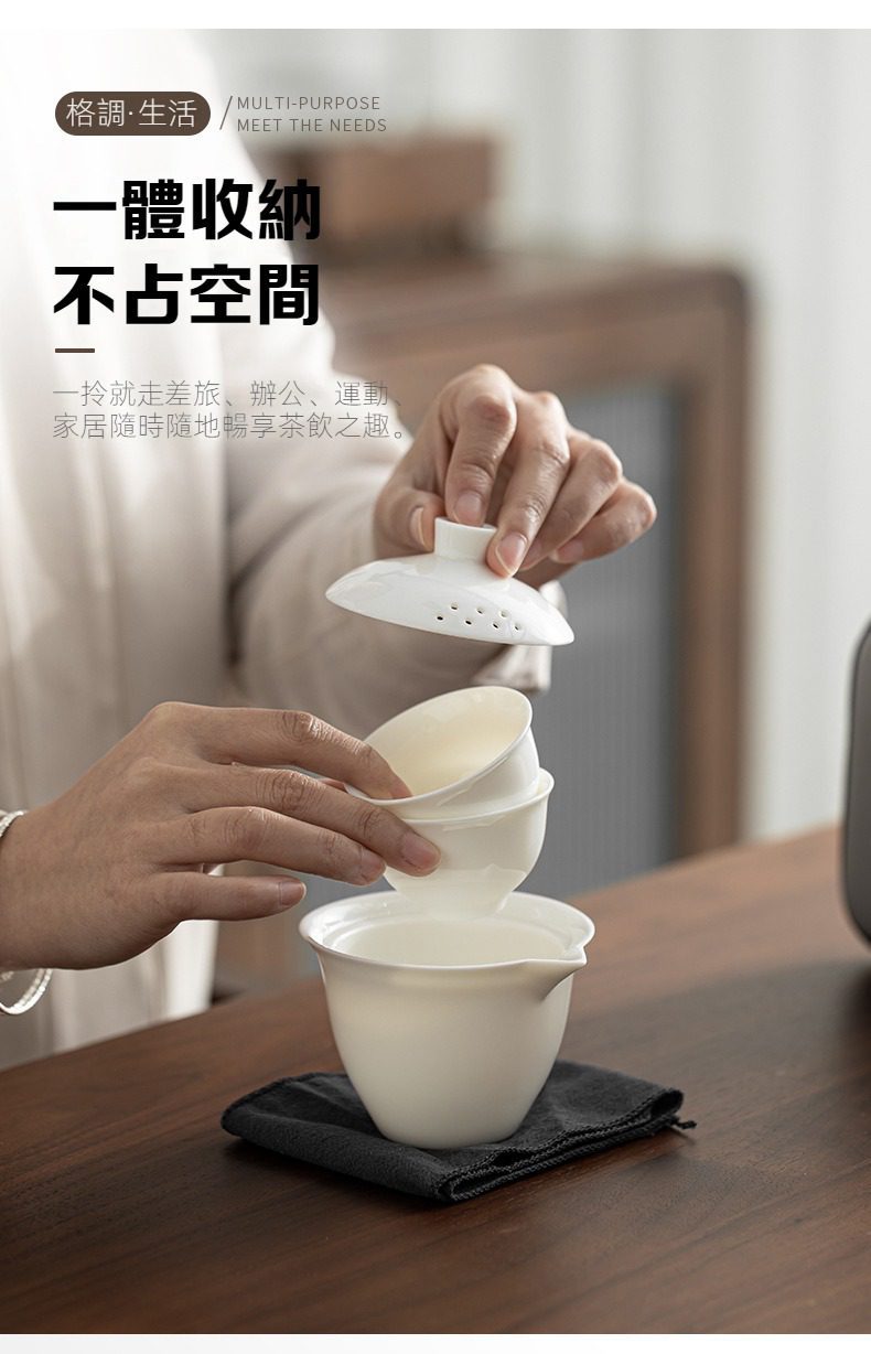白瓷雲樸旅行茶具組選用高品質材質,耐用易清潔,造型考究且穩定更加有序整潔,增添生活儀式感與格調,滿足自用、送禮與收藏需求。白瓷雲樸旅行茶具組皆嚴選材質與職人工藝,展現實用性與審美兼具的體驗。即日起滿三件享9折、五件享85折,立即選購,為生活添上南山居的儀式感。