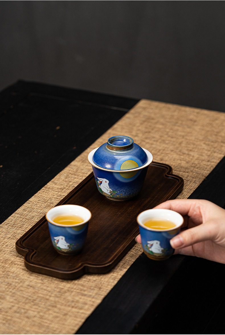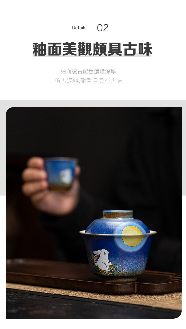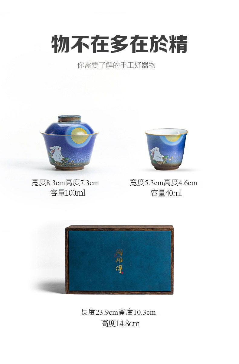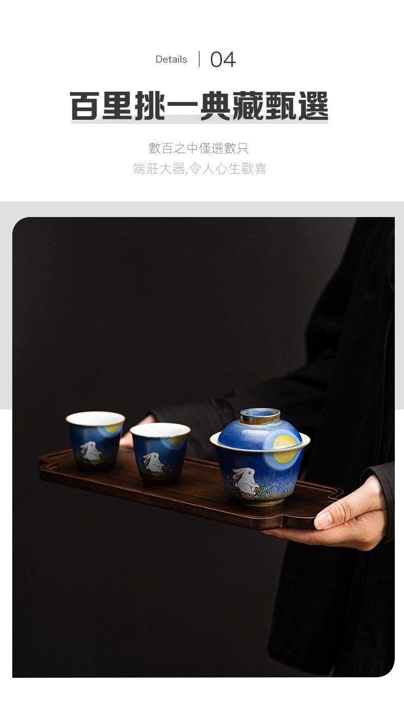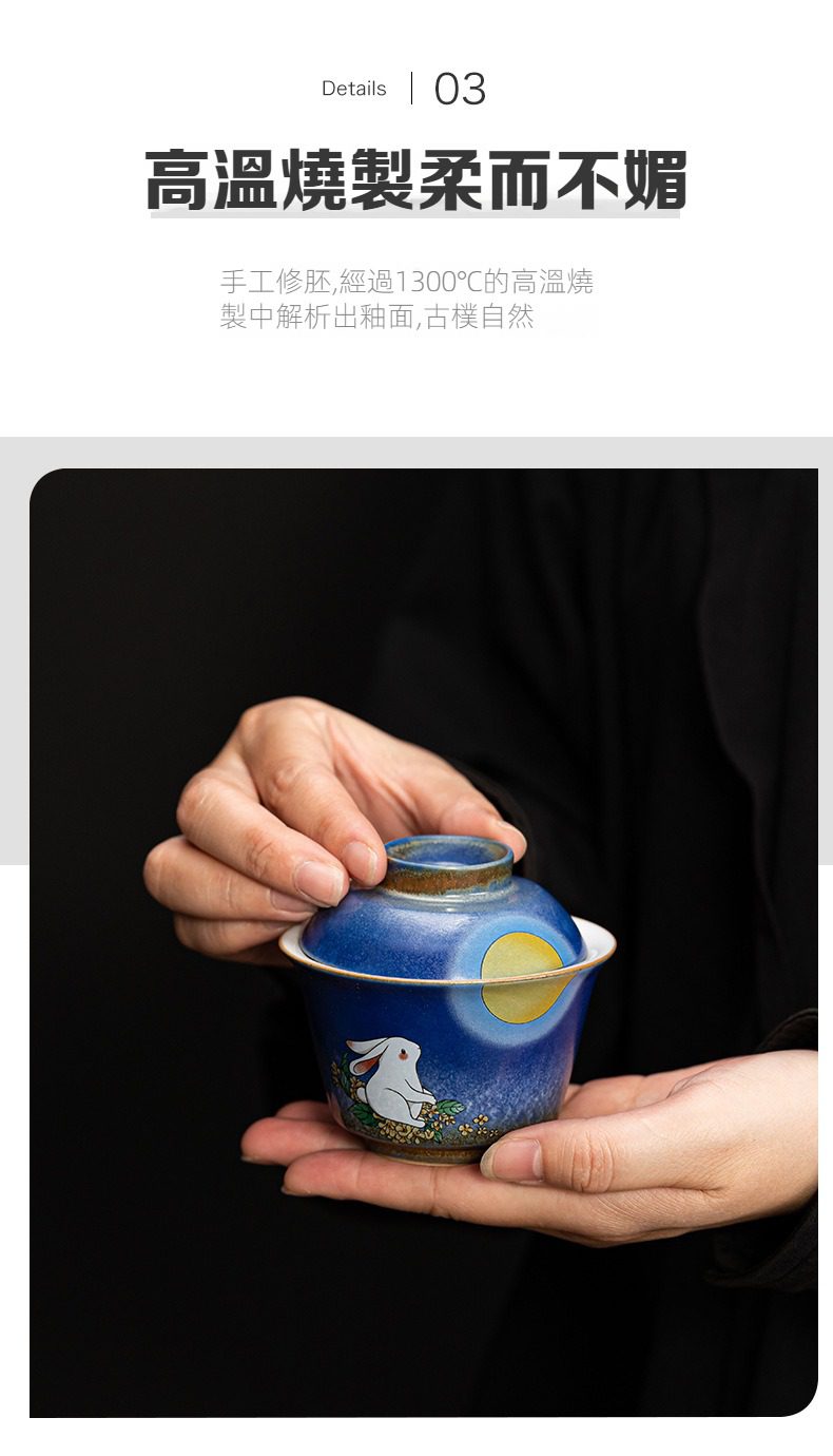 窯變煥彩石藍玉兔蓋碗快客杯選用高品質材質,耐用易清潔,造型考究且穩定更加有序整潔,增添生活儀式感與格調,滿足自用、送禮與收藏需求。窯變煥彩石藍玉兔蓋碗快客杯皆嚴選材質與職人工藝,展現實用性與審美兼具的體驗。即日起滿三件享9折、五件享85折,立即選購,為生活添上南山居的儀式感。