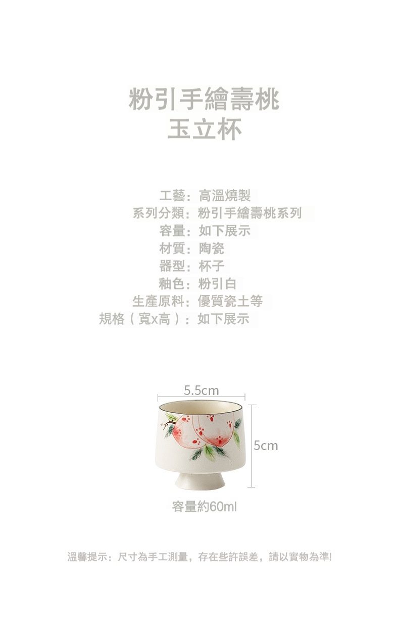 | 規格 | 粉引 – 手繪壽桃玉立杯 |