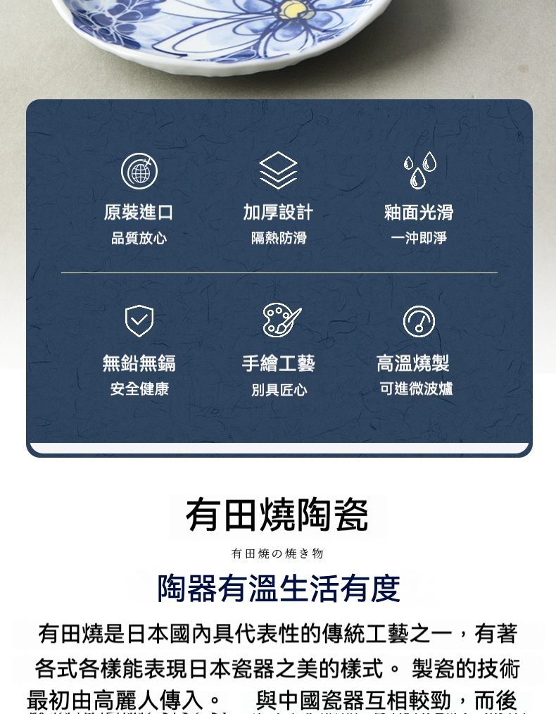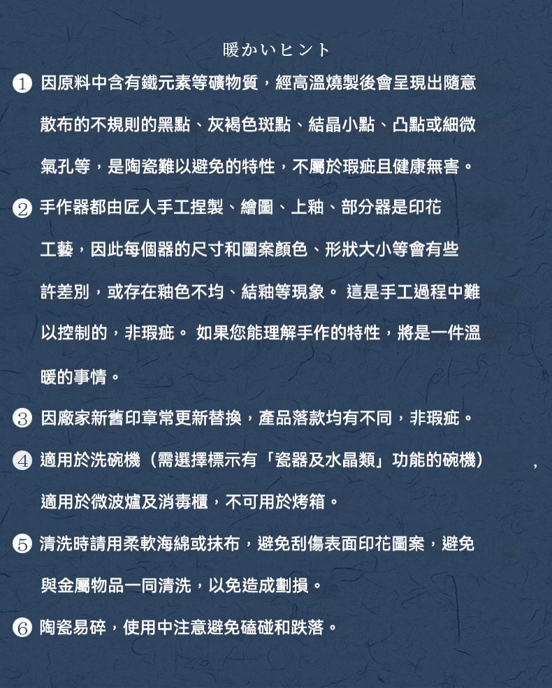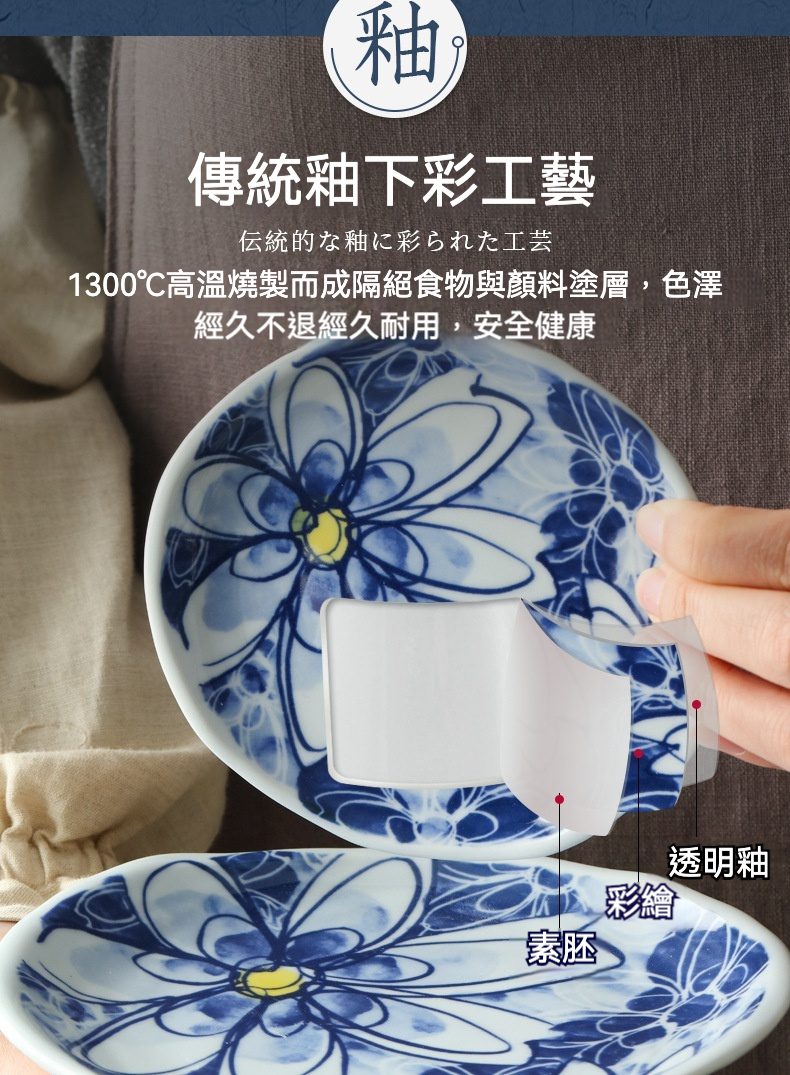 高溫燒製:以1300℃以上高溫燒成,瓷質堅硬細膩,耐用不易染色。