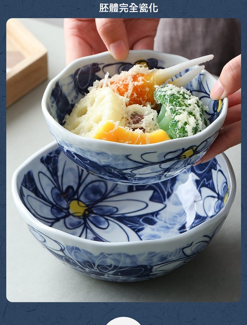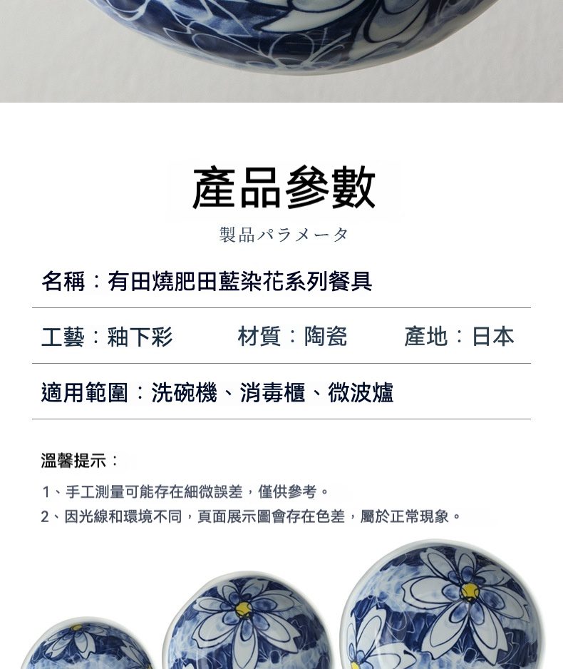 染付(藍染繪):藍白相間的優雅圖案(此藍染花系列就屬此類)。