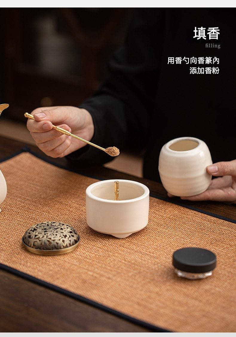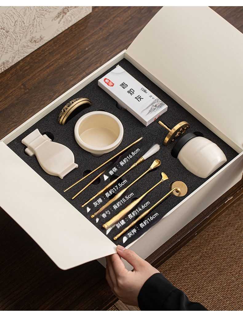 一場觀煙聞香的雅緻修行——觀聞香篆套裝集結蓮花造型香爐、六件香道工具、香灰、香瓶、香粉罐於一體,配以山水紋禮盒包裝,雅致大方,送禮自用兩相宜。靜心觀煙,修心養性,讓香氣成為生活中的溫柔儀式。
