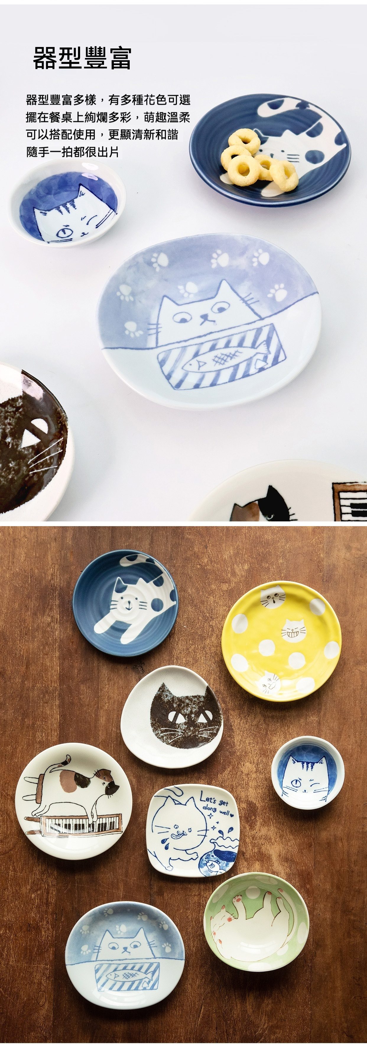 | 規格 | 貓之趣小碟(wink), 貓之趣小碟(逗魚), 貓之趣小盤(散步), 貓之趣小缽(玄貓), 貓之趣小盤(瞪眼), 貓之趣小盤(伸懶腰), 貓之趣橢圓中盤(饞嘴貓), 貓之趣中盤(節奏大師), 貓之趣中盤(竊喜), 貓之趣橢圓碗(愜意) |