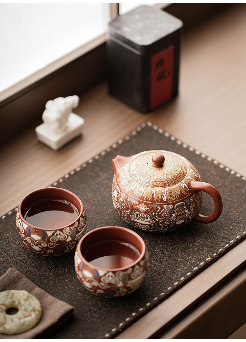 金銀錯紫砂敦煌西施壺套裝禮盒
