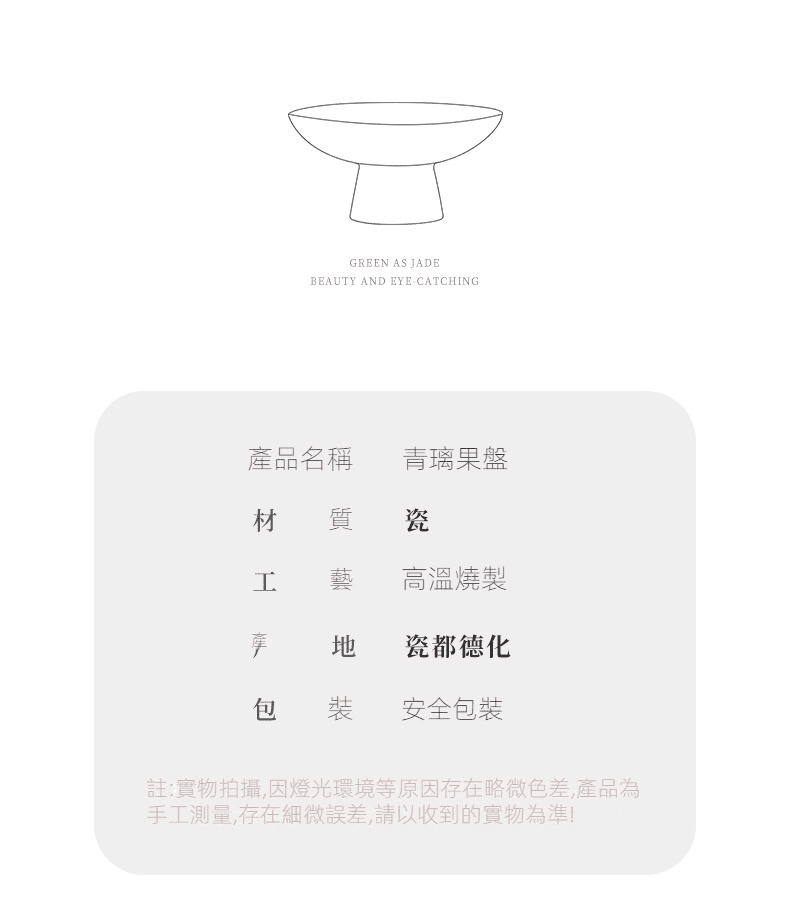 青璃釉果盤選用高品質材質,耐用易清潔,造型考究且穩定更加有序整潔,增添生活儀式感與格調,滿足自用、送禮與收藏需求。青璃釉果盤皆嚴選材質與職人工藝,展現實用性與審美兼具的體驗。即日起滿三件享9折、五件享85折,立即選購,為生活添上南山居的儀式感。
