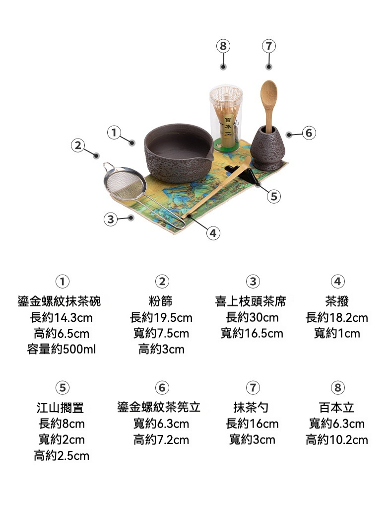 點茶 – 鎏金螺紋日式抹茶八件組