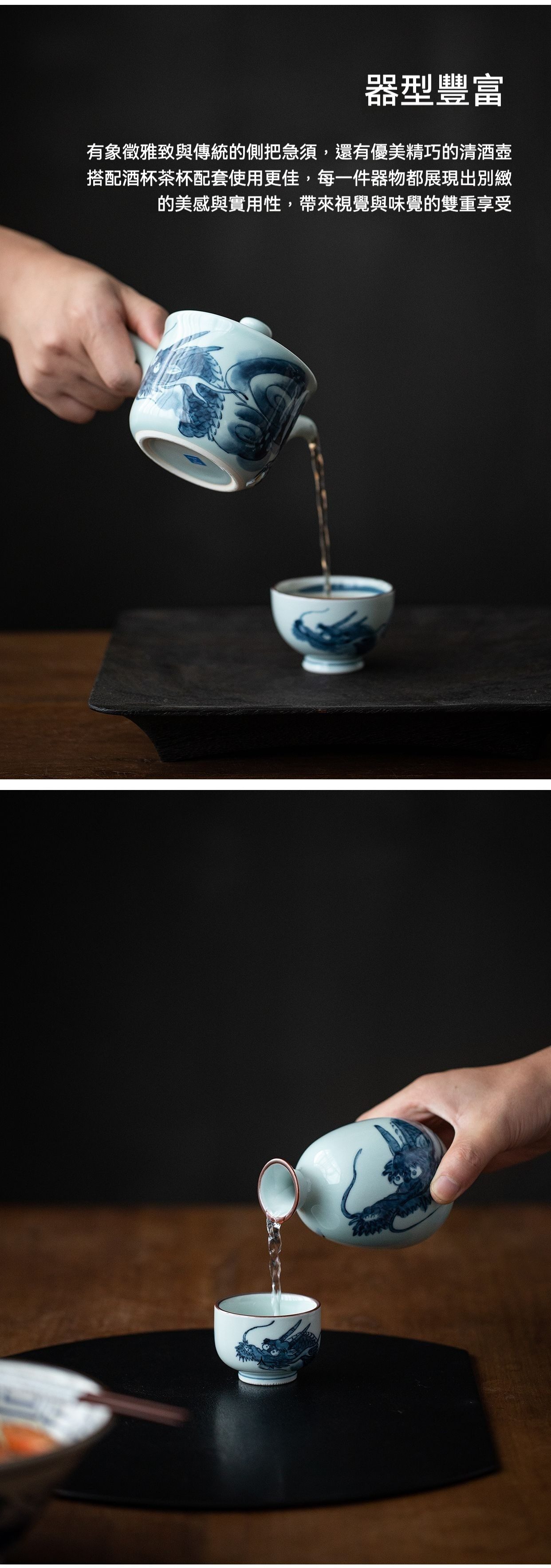 | 規格 | 龍翔酒壺, 龍翔酒杯, 龍翔茶杯, 龍翔側把急須壺 |
