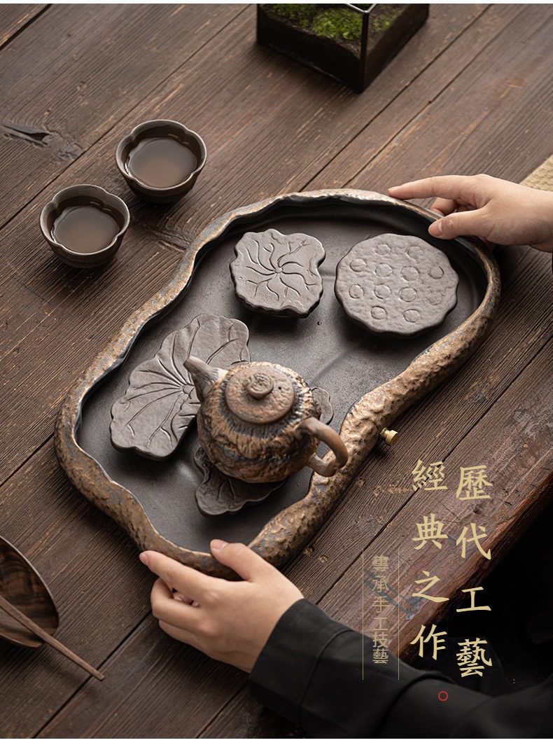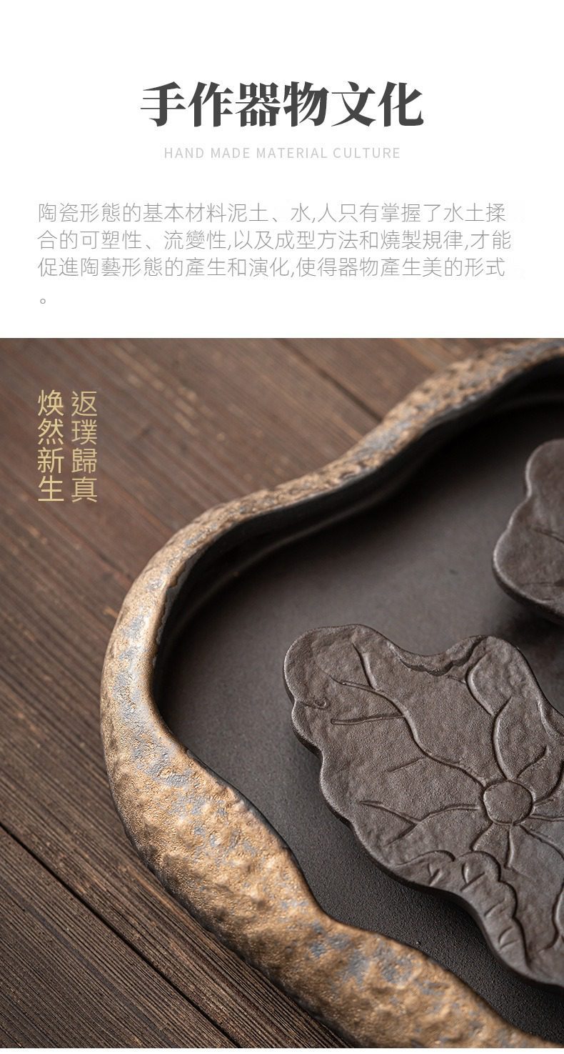 古早燒鎏金鐵釉荷塘乾泡茶盤選用高品質材質,耐用易清潔,造型考究且穩定更加有序整潔,增添生活儀式感與格調,滿足自用、送禮與收藏需求。古早燒鎏金鐵釉荷塘乾泡茶盤皆嚴選材質與職人工藝,展現實用性與審美兼具的體驗。即日起滿三件享9折、五件享85折,立即選購,為生活添上南山居的儀式感。