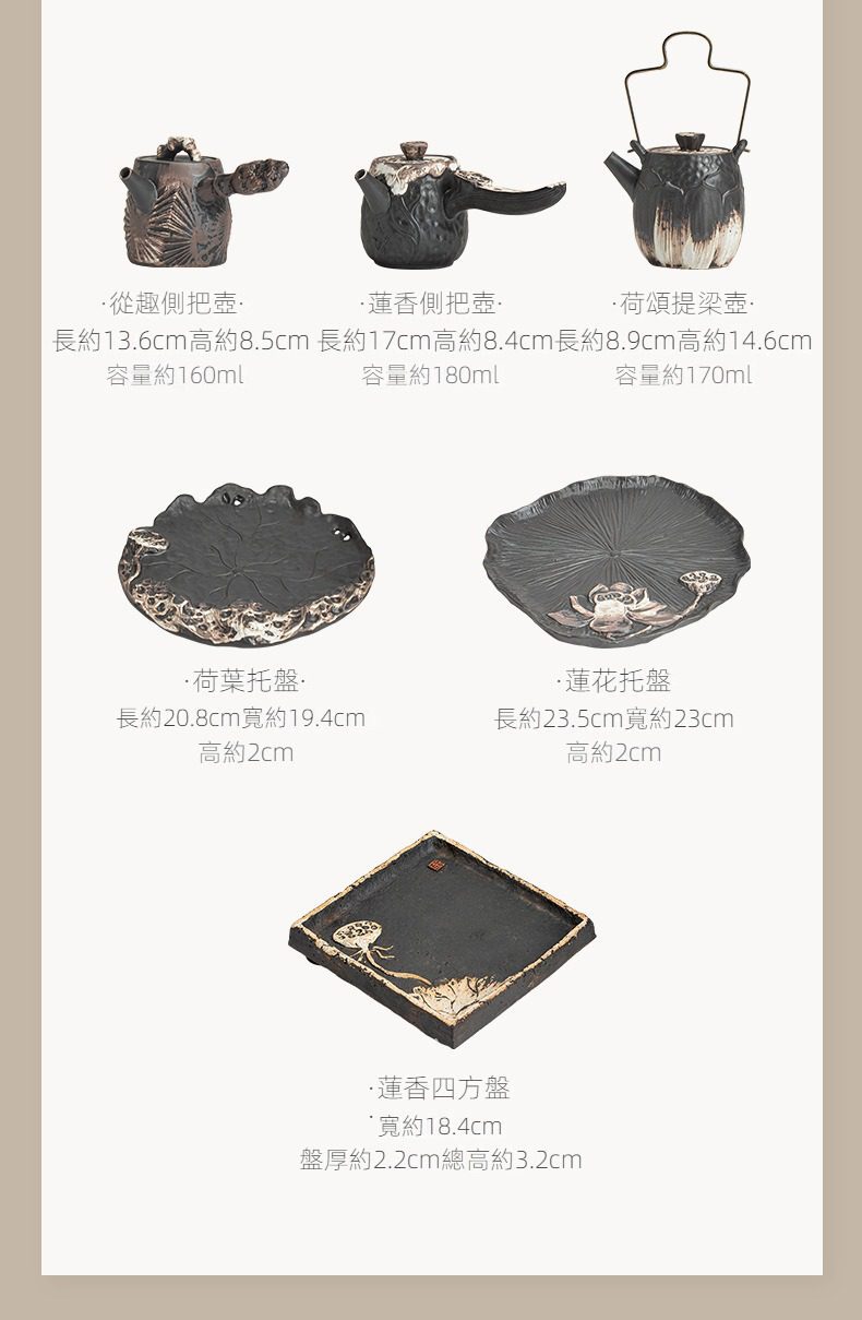 | 款式選擇 | 蓮香四方盤乾泡組【蓮韻蓋碗】, 蓮香四方盤乾泡組【荷頌正把壺】, 蓮香四方盤乾泡組【蓮香側把壺】, 蓮香四方盤乾泡組【荷頌提梁壺】, 蓮香四方盤乾泡組【從側趣把壺】, 荷葉托盤乾泡組【蓮香側把壺】, 荷葉托盤乾泡組【荷頌正把壺】, 蓮花托盤乾泡組【蓮香側把壺】, 蓮花托盤乾泡組【荷頌正把壺】, 荷葉托盤乾泡組【蓮韻蓋碗】, 蓮花托盤乾泡組【從側趣把壺】, 蓮花托盤乾泡組【荷頌提梁壺】 |