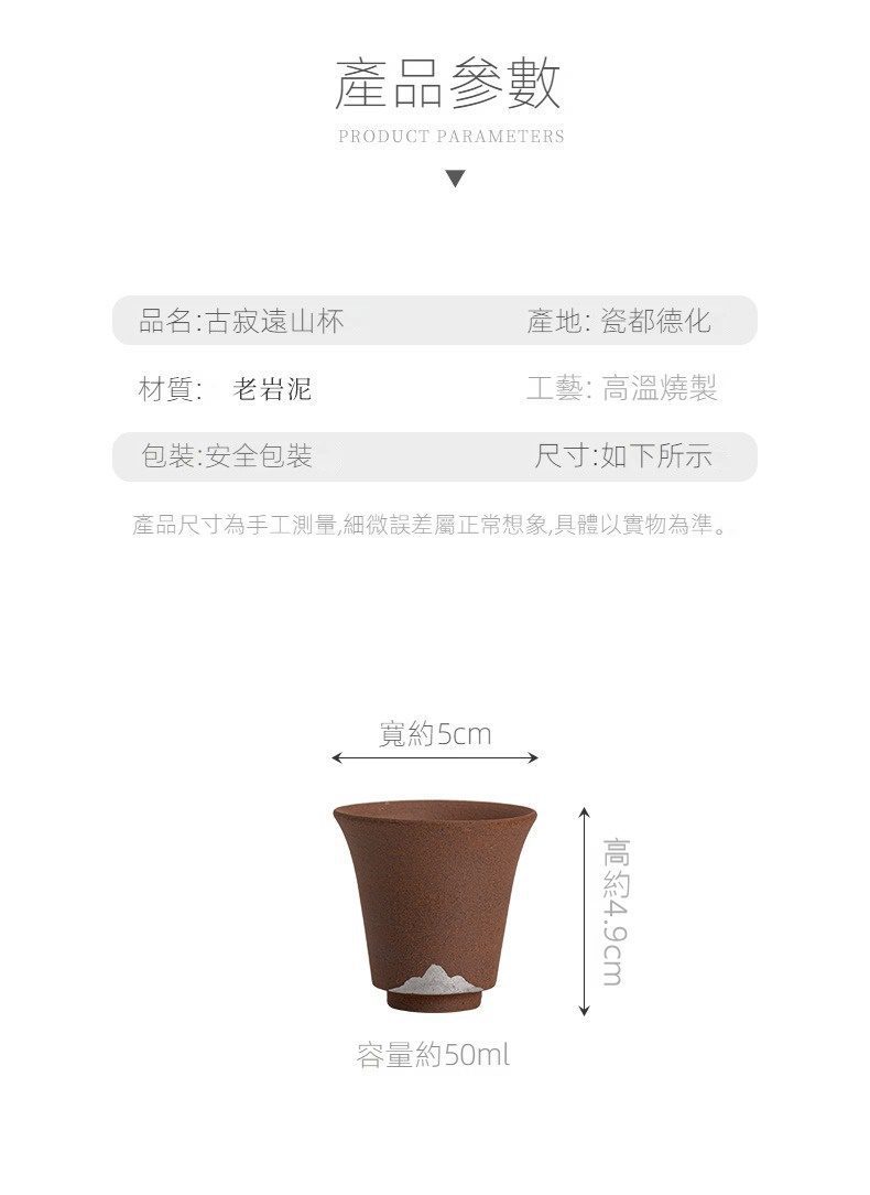 空寂齋老岩泥遠山品茗杯選用高品質材質,耐用易清潔,造型考究且穩定更加有序整潔,增添生活儀式感與格調,滿足自用、送禮與收藏需求。空寂齋老岩泥遠山品茗杯皆嚴選材質與職人工藝,展現實用性與審美兼具的體驗。即日起滿三件享9折、五件享85折,立即選購,為生活添上南山居的儀式感。